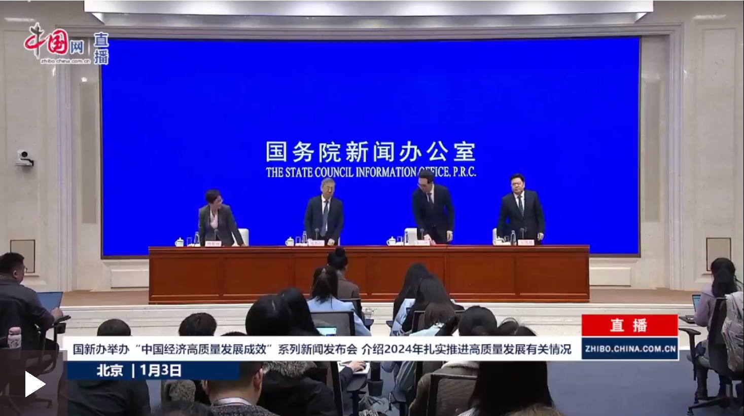 女士們、先生們,大家上午好。歡迎出席國(guó)務(wù)院新聞辦新聞發(fā)布會(huì)。今天我們舉行“中國(guó)經(jīng)濟(jì)高質(zhì)量發(fā)展成效”系列新聞發(fā)布會(huì),我們邀請(qǐng)到國(guó)家發(fā)展改革委副主任趙辰昕先生,請(qǐng)他向大家介紹2024年扎實(shí)推進(jìn)高質(zhì)量發(fā)展有關(guān)情況,并回答大家關(guān)心的問(wèn)題。出席今天發(fā)布會(huì)的還有:國(guó)家發(fā)展改革委副秘書(shū)長(zhǎng)袁達(dá)先生,副秘書(shū)長(zhǎng)肖渭明先生。