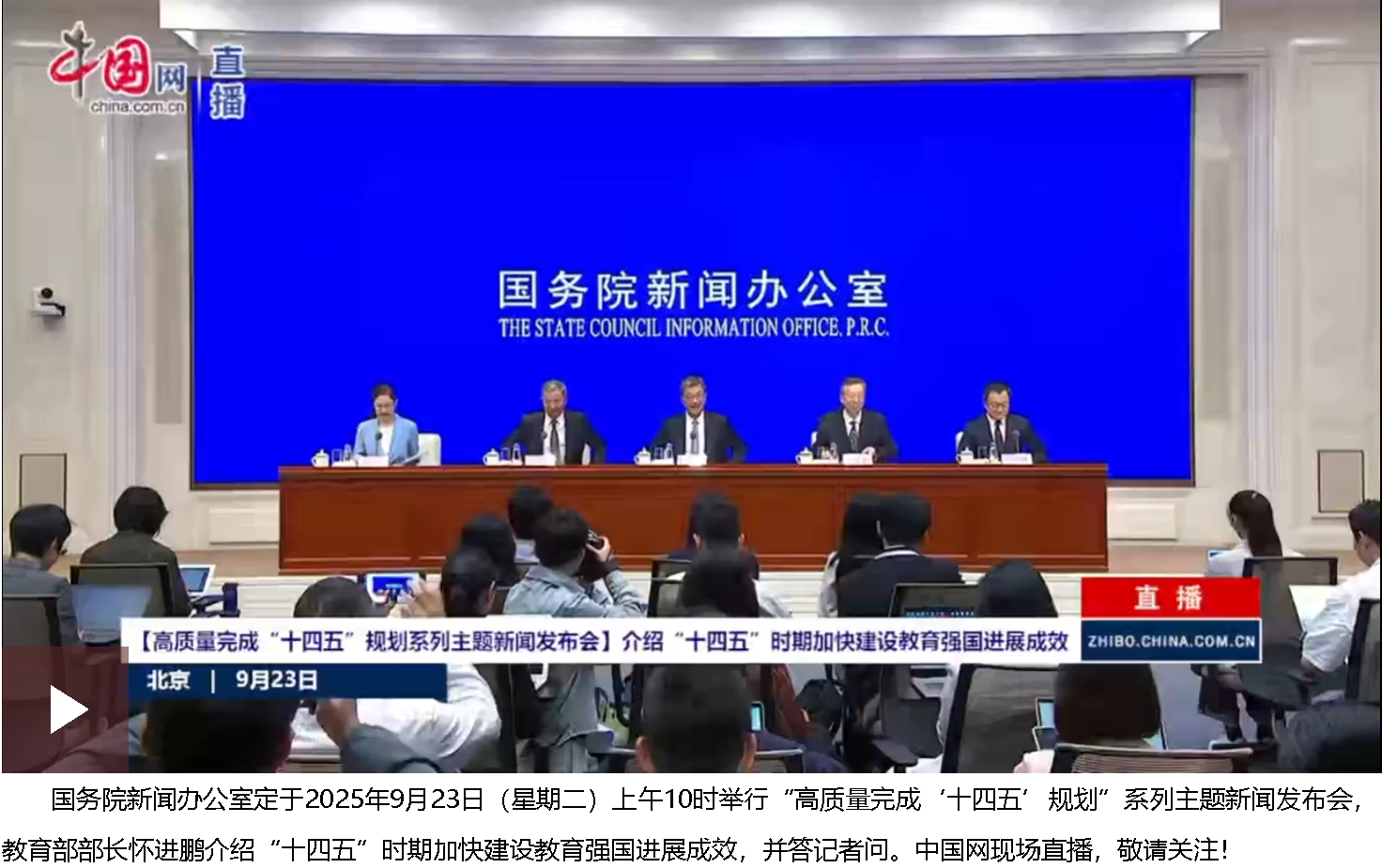 【高質(zhì)量完成“十四五”規(guī)劃系列主題新聞發(fā)布會】介紹“十四五”時(shí)期加快建設(shè)教育強(qiáng)國進(jìn)展成效2025-09-23