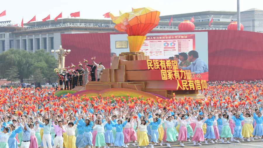 篇篇賀詞,團結(jié)是“大江南北披上紅色盛裝,人們臉上洋溢著自豪的笑容,《我和我的祖國》在大街小巷傳唱”;是“逆行出征的豪邁”“頑強不屈的堅守”“患難與共的擔(dān)當(dāng)”“英勇無畏的犧牲”“守望相助的感動”;是“廣大軍民不畏艱險,同心協(xié)力抗洪救災(zāi)”……
