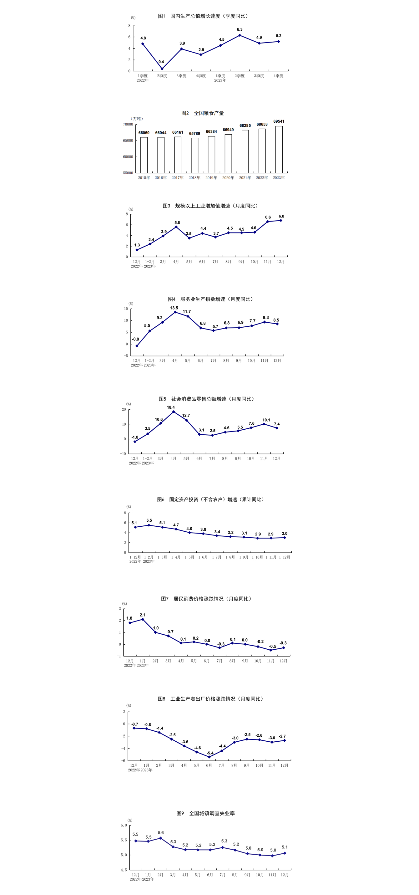 2023年,面對復(fù)雜嚴(yán)峻的國際環(huán)境和艱巨繁重的國內(nèi)改革發(fā)展穩(wěn)定任務(wù),在以習(xí)近平同志為核心的黨中央堅(jiān)強(qiáng)領(lǐng)導(dǎo)下,各地區(qū)各部門認(rèn)真貫徹落實(shí)黨中央、國務(wù)院決策部署,堅(jiān)持穩(wěn)中求進(jìn)工作總基調(diào),完整、準(zhǔn)確、全面貫徹新發(fā)展理念,加快構(gòu)建新發(fā)展格局,全面深化改革開放,加大宏觀調(diào)控力度,著力擴(kuò)大內(nèi)需、優(yōu)化結(jié)構(gòu)、提振信心、防范化解風(fēng)險(xiǎn),我國經(jīng)濟(jì)回升向好,供給需求穩(wěn)步改善,轉(zhuǎn)型升級(jí)積極推進(jìn),就業(yè)物價(jià)總體穩(wěn)定,民生保障有力有效,高質(zhì)量發(fā)展扎實(shí)推進(jìn),主要預(yù)期目標(biāo)圓滿實(shí)現(xiàn)。