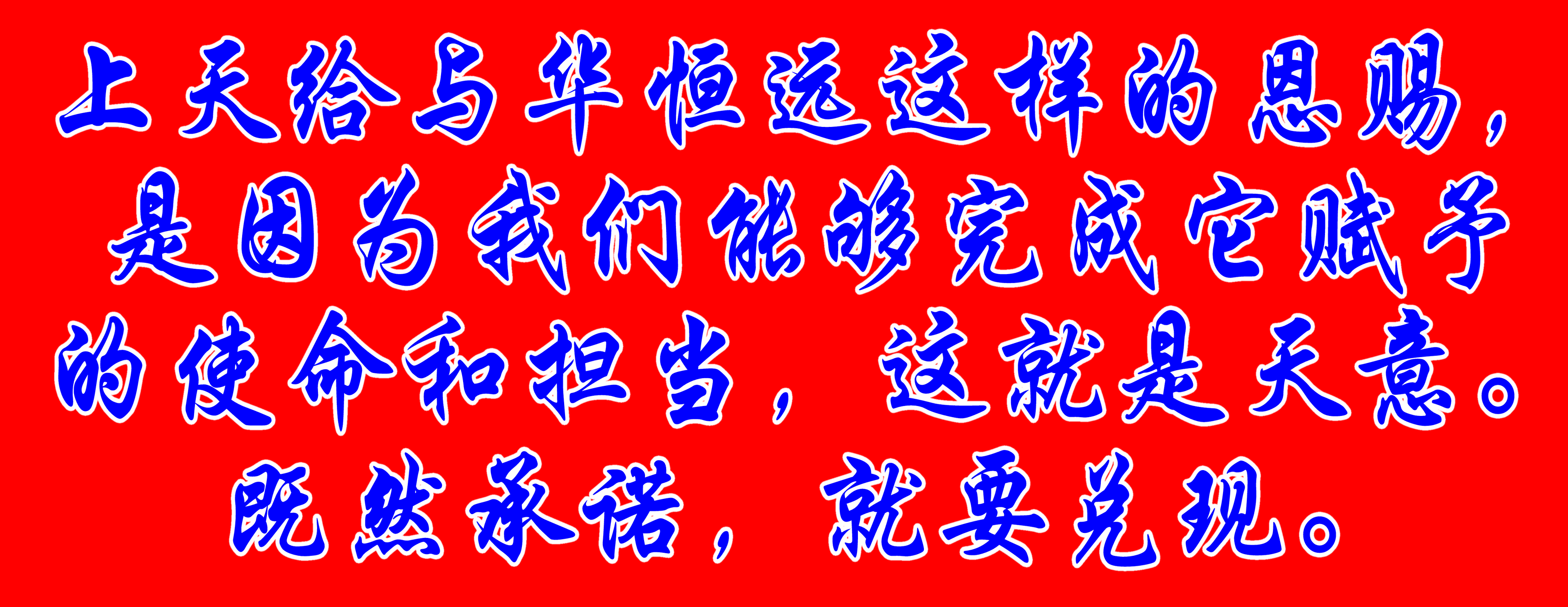 上天給與華恒遠(yuǎn)這樣的恩賜,是因?yàn)槲覀兡軌蛲瓿伤x予的使命和擔(dān)當(dāng),這就是天意。既然承諾,就要兌現(xiàn)。