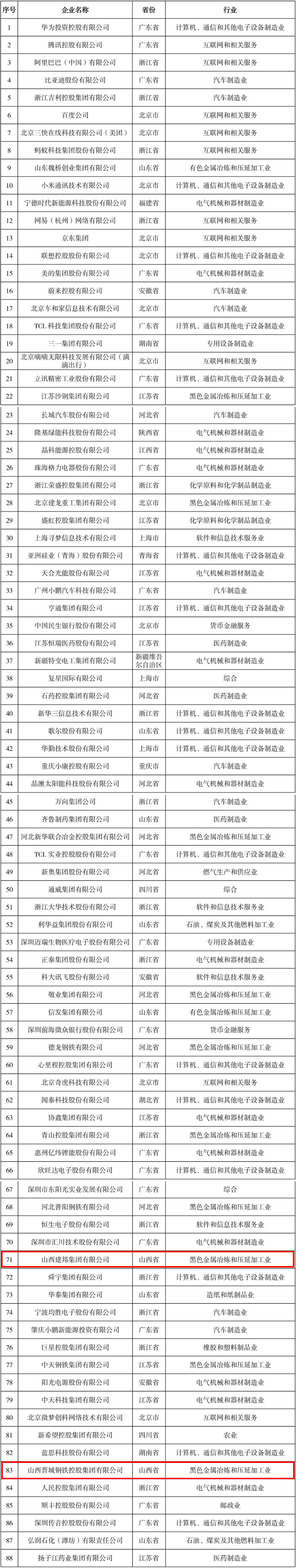 9月23日,2024全國民營企業(yè)科技創(chuàng)新與標(biāo)準(zhǔn)創(chuàng)新大會(huì)暨全國知名民企助力創(chuàng)新龍江建設(shè)大會(huì)在黑龍江哈爾濱舉行。會(huì)議發(fā)布了2024民營企業(yè)研發(fā)投入500家榜單、2024民營企業(yè)發(fā)明專利500家榜單。其中,山西6家企業(yè)榮登2024民營企業(yè)研發(fā)投入500家榜單,1家企業(yè)榮登2024民營企業(yè)發(fā)明專利500家榜單。