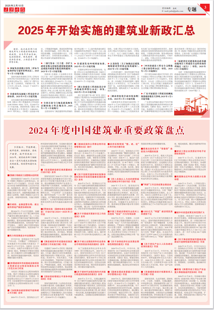 鄉(xiāng)村振興、節(jié)能降碳、城市更新、招標(biāo)投標(biāo)、房地產(chǎn)融資、城中村改造……2024年,國家政府部門相繼出臺一系列與建筑業(yè)密切相關(guān)的政策,深刻影響著行業(yè)發(fā)展。
