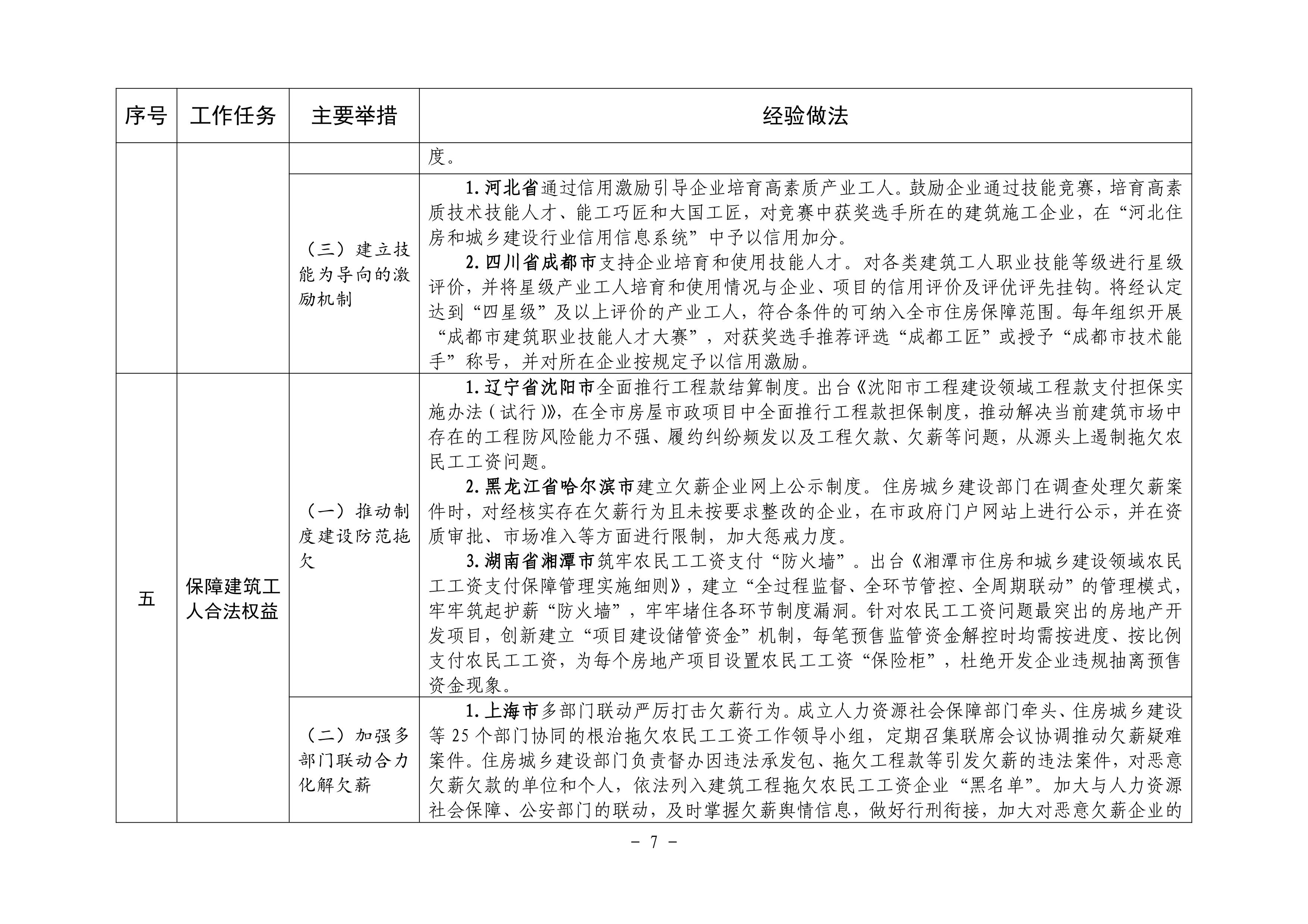 按照住房城鄉(xiāng)建設(shè)部等部門《關(guān)于加快培育新時(shí)代建筑產(chǎn)業(yè)工人隊(duì)伍的指導(dǎo)意見》(建市〔2020〕105 號(hào))要求,各地圍繞推進(jìn)建筑農(nóng)民工向新時(shí)代建筑產(chǎn)業(yè)工人轉(zhuǎn)型、完善建筑工人實(shí)名制管理、提升建筑工人技能水平、加強(qiáng)統(tǒng)籌協(xié)作和政策支持、保障建筑工人合法權(quán)益等方面,積極探索、大力推進(jìn)建筑產(chǎn)業(yè)工人隊(duì)伍建設(shè),取得了積極成效?,F(xiàn)將有關(guān)經(jīng)驗(yàn)做法印發(fā)給你們,請(qǐng)結(jié)合實(shí)際學(xué)習(xí)借鑒。