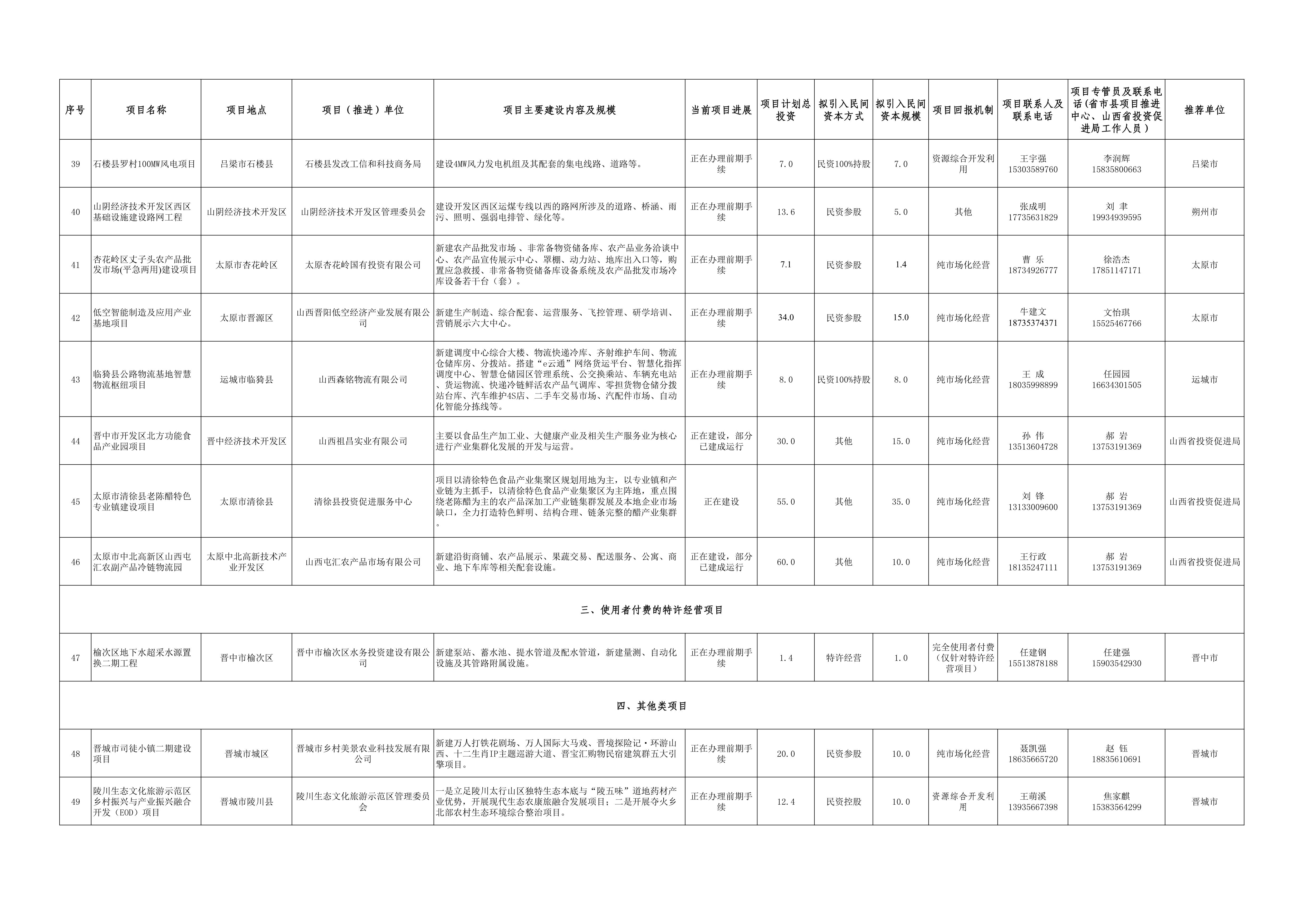 山西2023年第三批向民間資本推介項(xiàng)目名單 2023-09-27