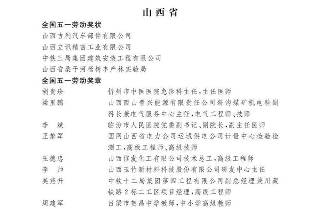 2023全國(guó)五一勞動(dòng)獎(jiǎng)狀獲獎(jiǎng)名單