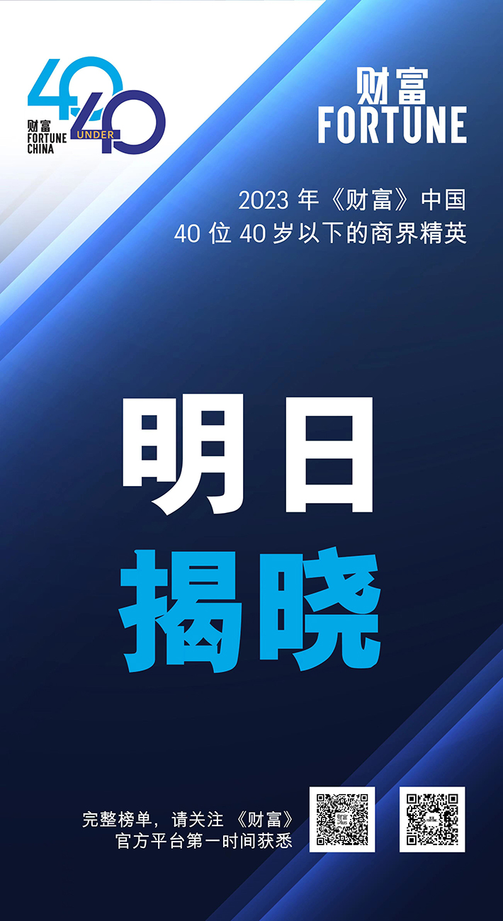 2023年《財(cái)富》中國(guó)40位40歲以下的商界精英榜單將于明日發(fā)布