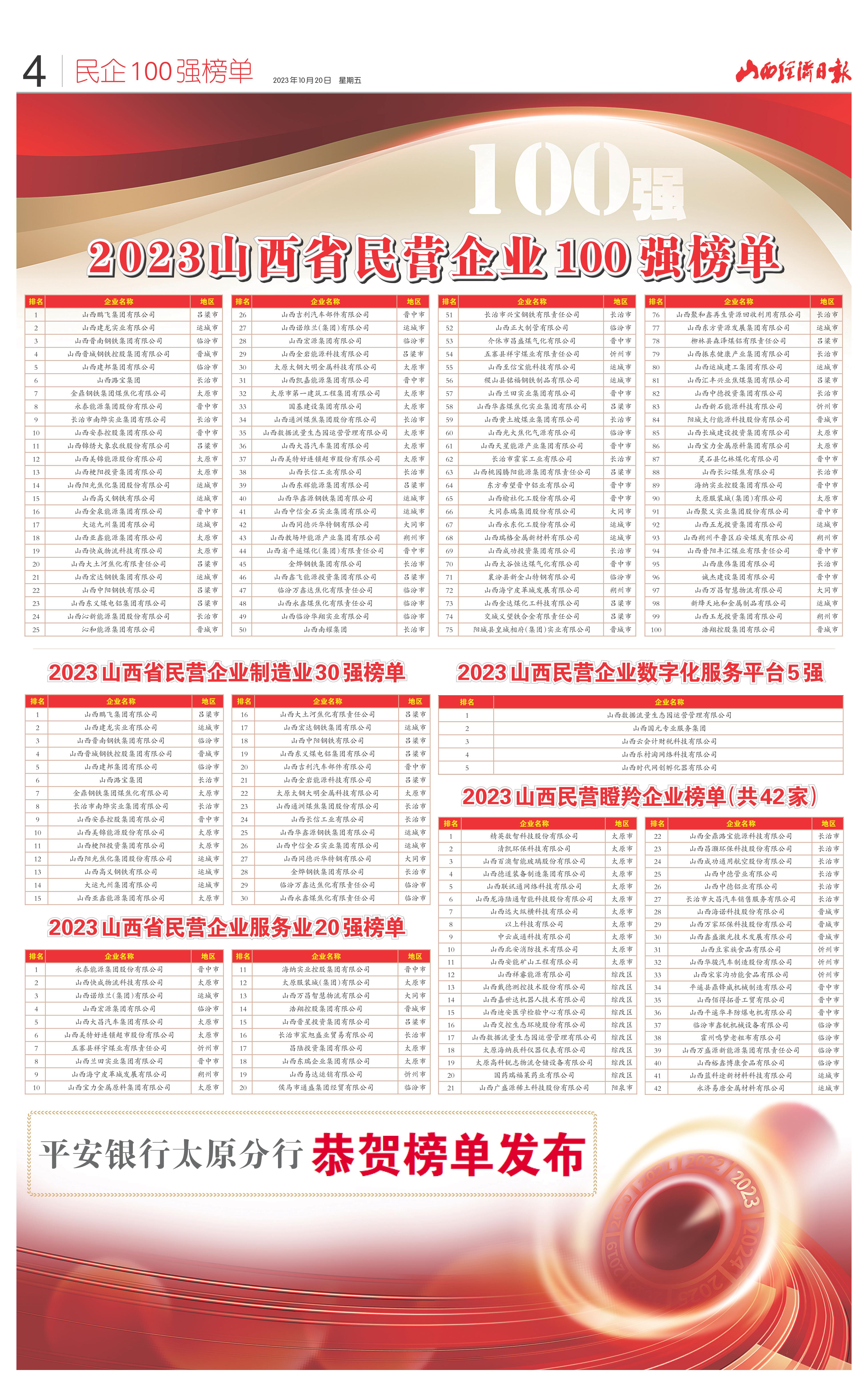2023山西民營瞪羚企業(yè)榜單