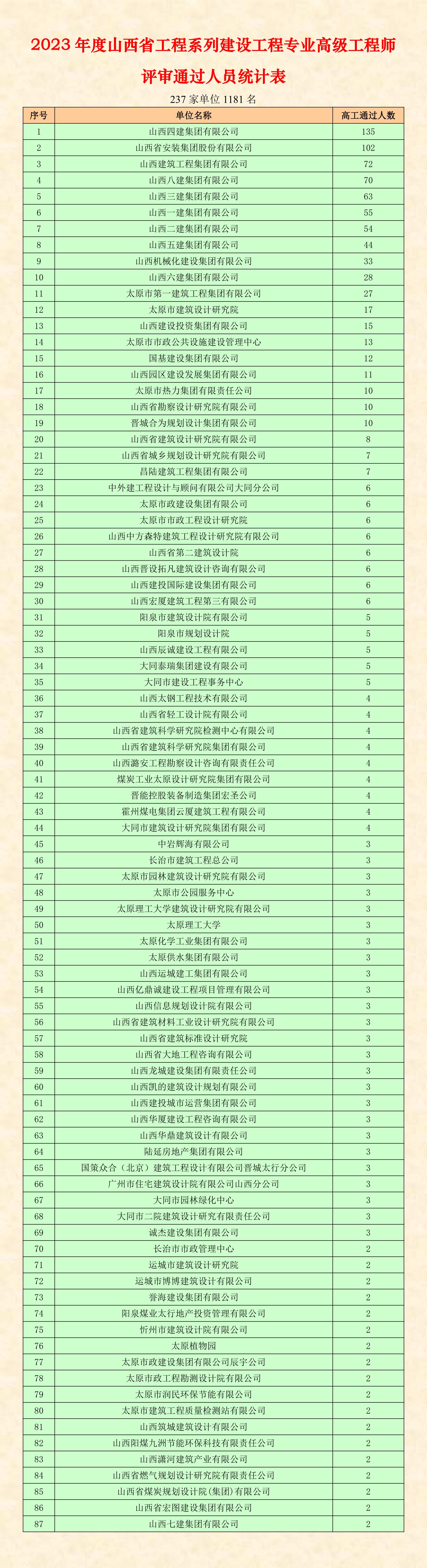 經(jīng)山西省工程系列建設(shè)工程專業(yè)高級工程師評審委員會于2023年11月15日評審,通過了王向利等1181名同志具備高級工程師任職資格(詳見附件),現(xiàn)予以公示。