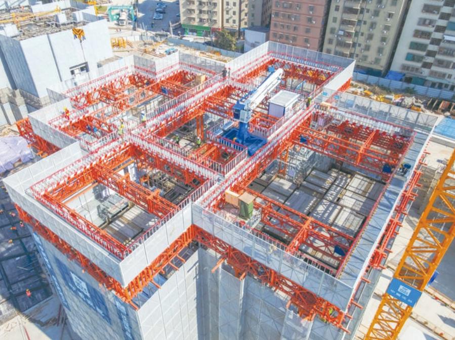 鋁模拼裝、鋼筋綁扎、混凝土澆筑……在深圳南山智造紅花嶺基地城市更新項(xiàng)目工地,幾十臺大型施工機(jī)械忙碌作業(yè),不久前,一棟近百米高的大型廠房完成首棟封頂,實(shí)現(xiàn)“工業(yè)上樓”。