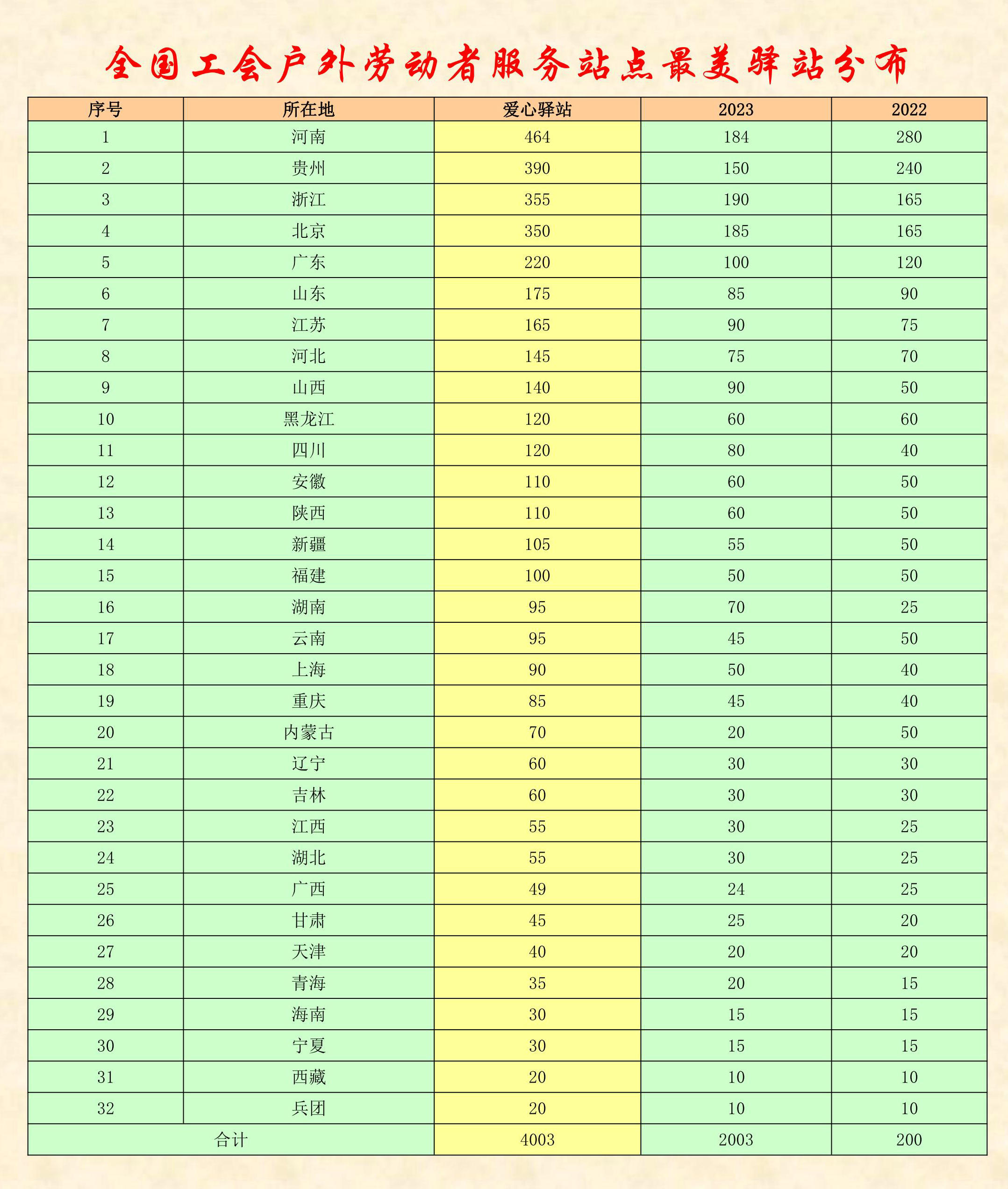 我省工會把加快推進(jìn)戶外勞動者服務(wù)站點建設(shè)作為維護(hù)職工切身利益、關(guān)愛職工身心健康的重要平臺,作為服務(wù)職工群眾、增進(jìn)民生福祉的重要抓手,連續(xù)兩年納入省政府民生實事項目,率先在全國實現(xiàn)站點在高德地圖上線,率先開發(fā)應(yīng)用站點管理小程序,率先舉辦站點管理員培訓(xùn)班,成為全國服務(wù)站點規(guī)劃設(shè)計三個試點省份之一。截至今年上半年,全省已建成各類戶外勞動者服務(wù)站點5813個。
