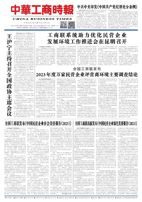 全國工商聯(lián)出版發(fā)布《中國民營企業(yè)綠色發(fā)展報告(2023)》