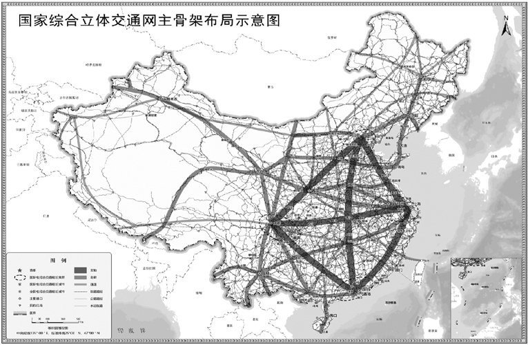 “6軸、7廊、8通道”,即京津冀—長(zhǎng)三角、長(zhǎng)三角—粵港澳等6條主軸,京哈、京藏等7條走廊和綏滿、京延等8條通道,它們是國(guó)家綜合立體交通網(wǎng)中最為關(guān)鍵的主干線、主通道,也是我國(guó)國(guó)土空間開發(fā)的主軸線、國(guó)民經(jīng)濟(jì)循環(huán)的主動(dòng)脈。