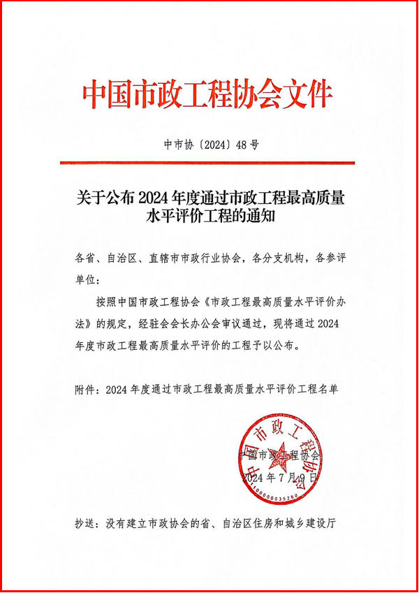 2024年度通過(guò)市政工程最高質(zhì)量水平評(píng)價(jià)工程名單