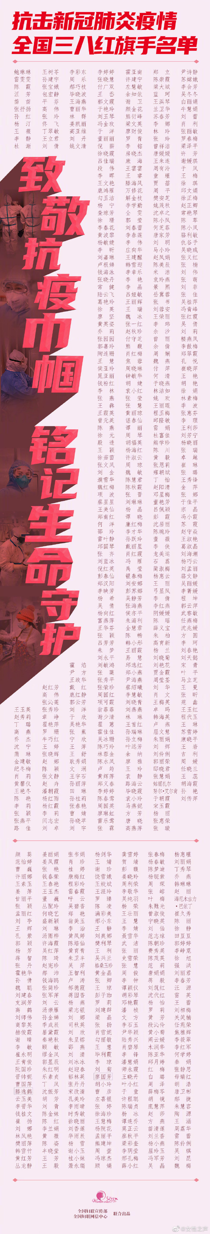 21名個(gè)人4個(gè)集體榮獲抗擊新冠肺炎疫情全國(guó)三八紅旗手(集體)稱號(hào)