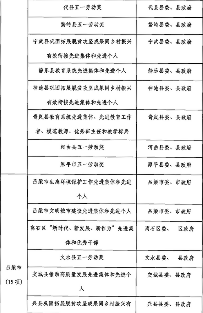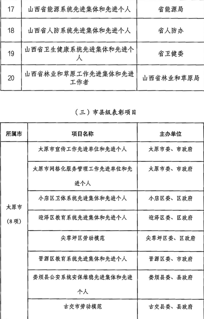 山西省2023年計(jì)劃開展的評(píng)比達(dá)標(biāo)表彰項(xiàng)目目錄
