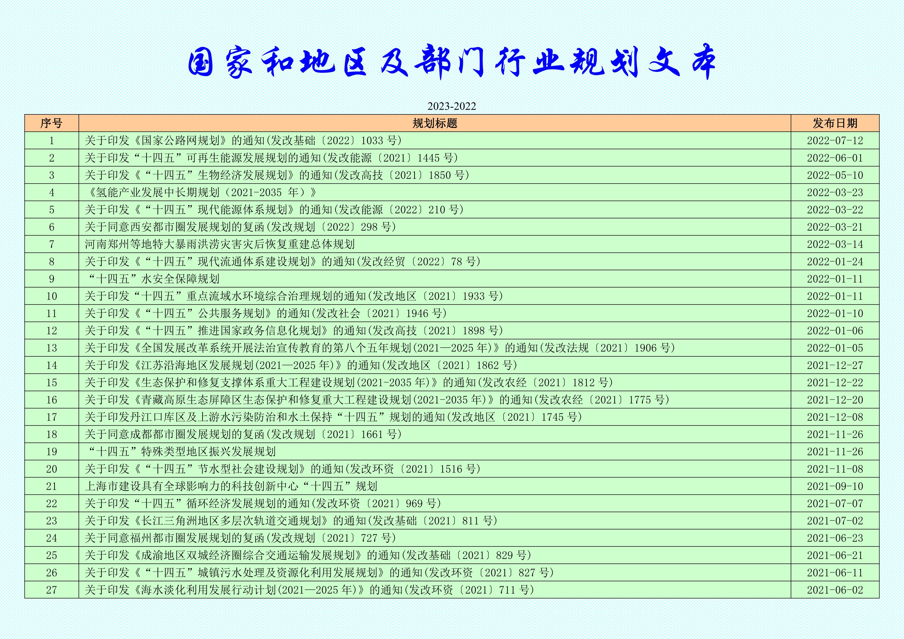 國家和地區(qū)及部門行業(yè)規(guī)劃文本2003-2022