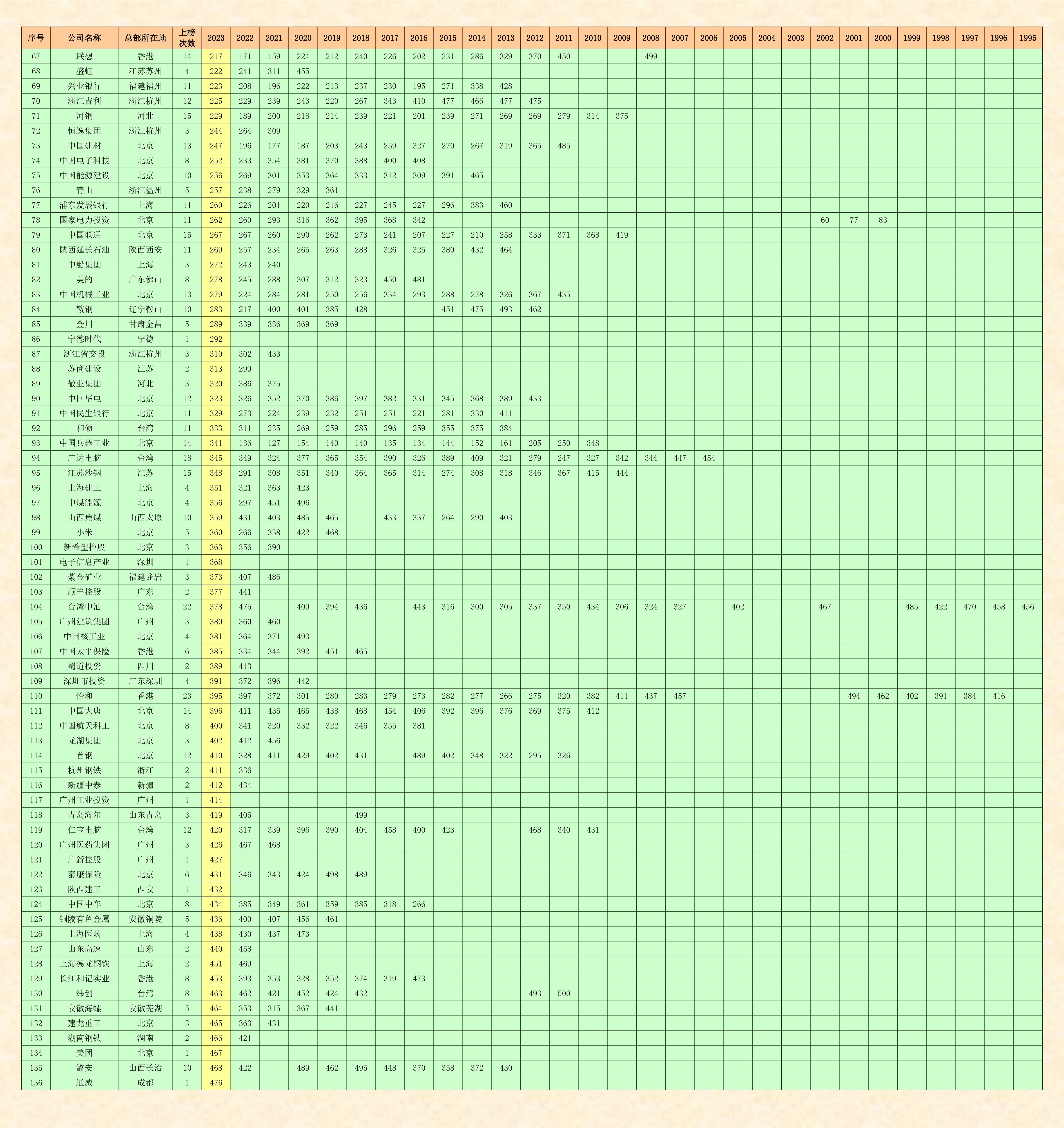 1735 368 中國(guó)電子信息產(chǎn)業(yè)集團(tuán)有限公司(CHINA ELECTRONICS) 40326.3 深圳 2023 101