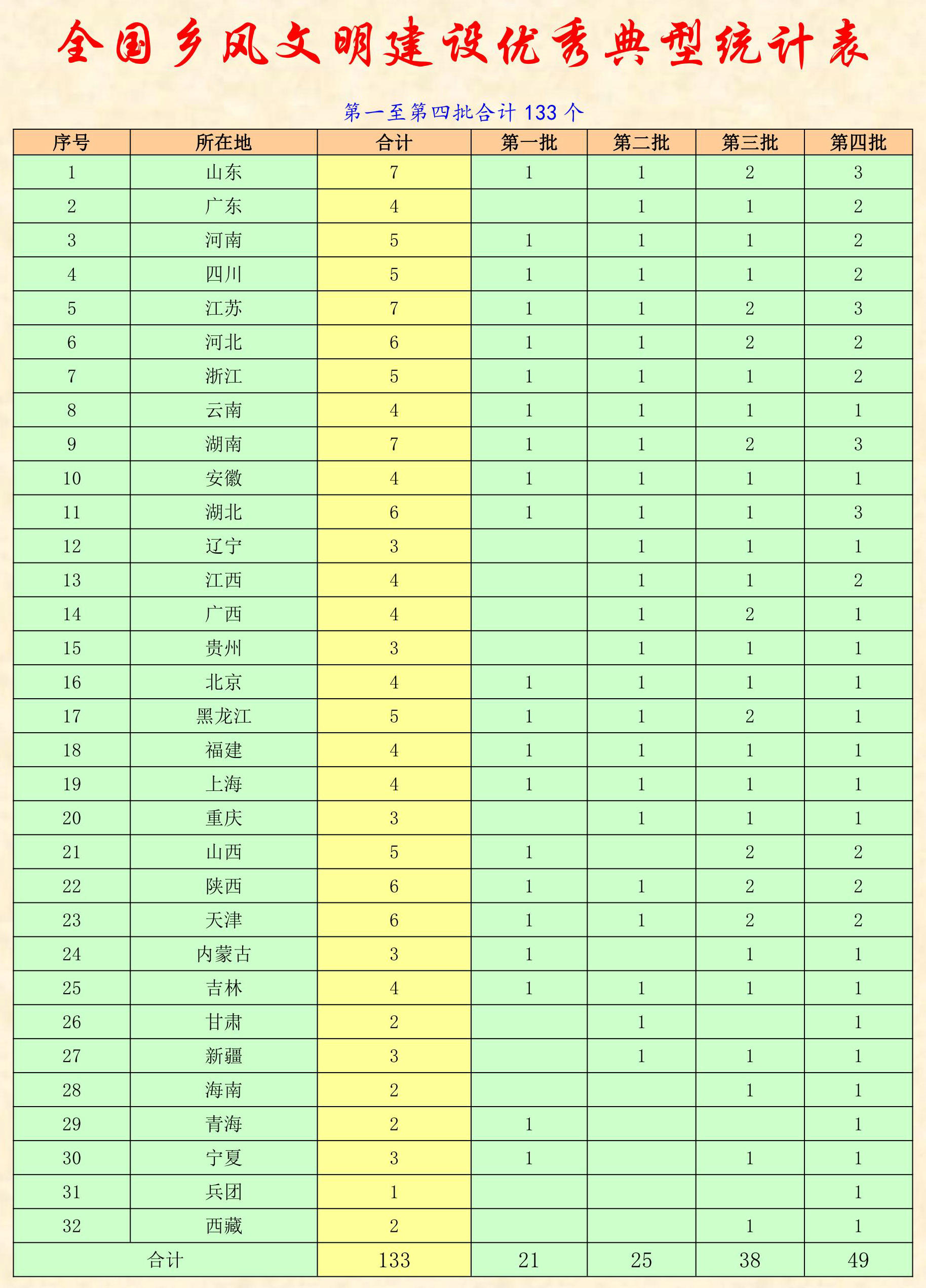第一至第四批合計(jì)133個(gè)