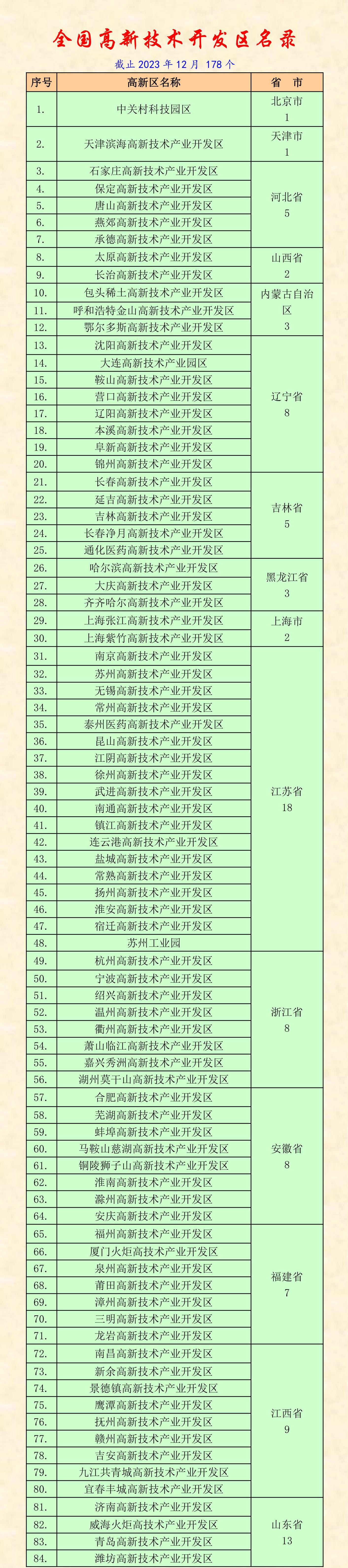 全國高新技術(shù)開發(fā)區(qū)分布情況