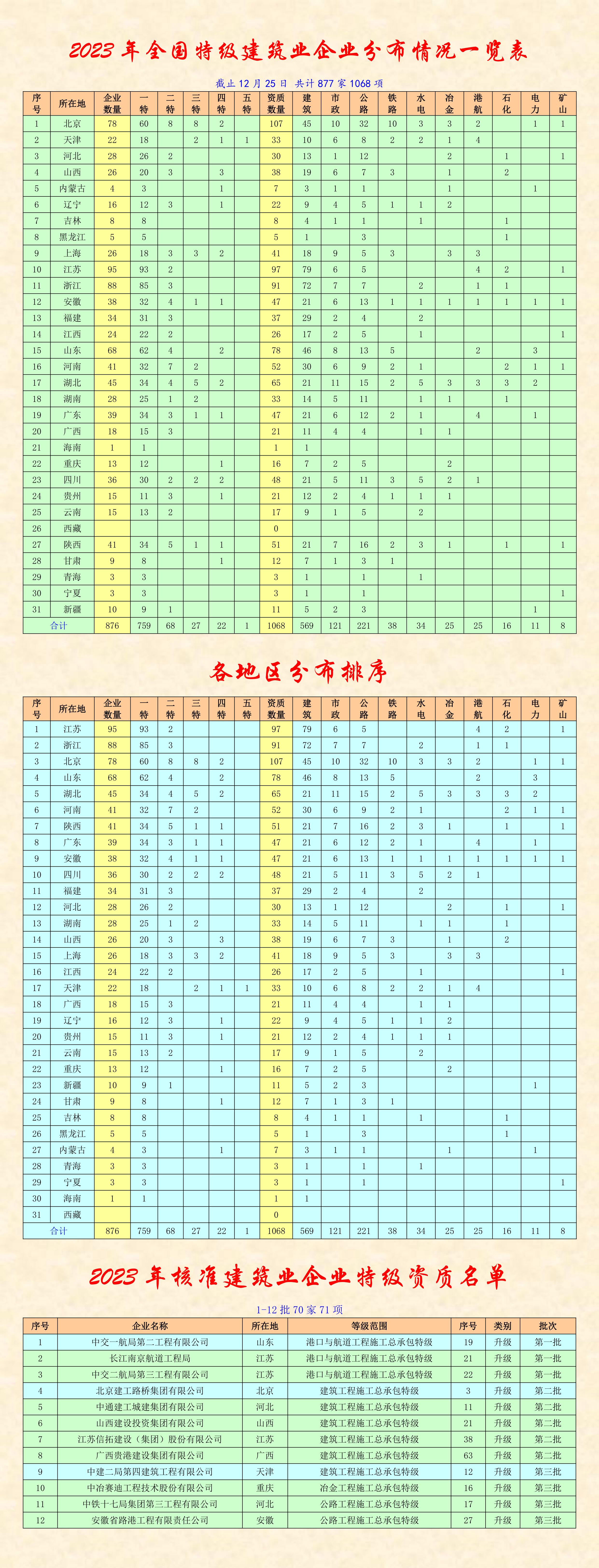 【行業(yè)資料】2023年全國特級資質建筑業(yè)企業(yè)名錄