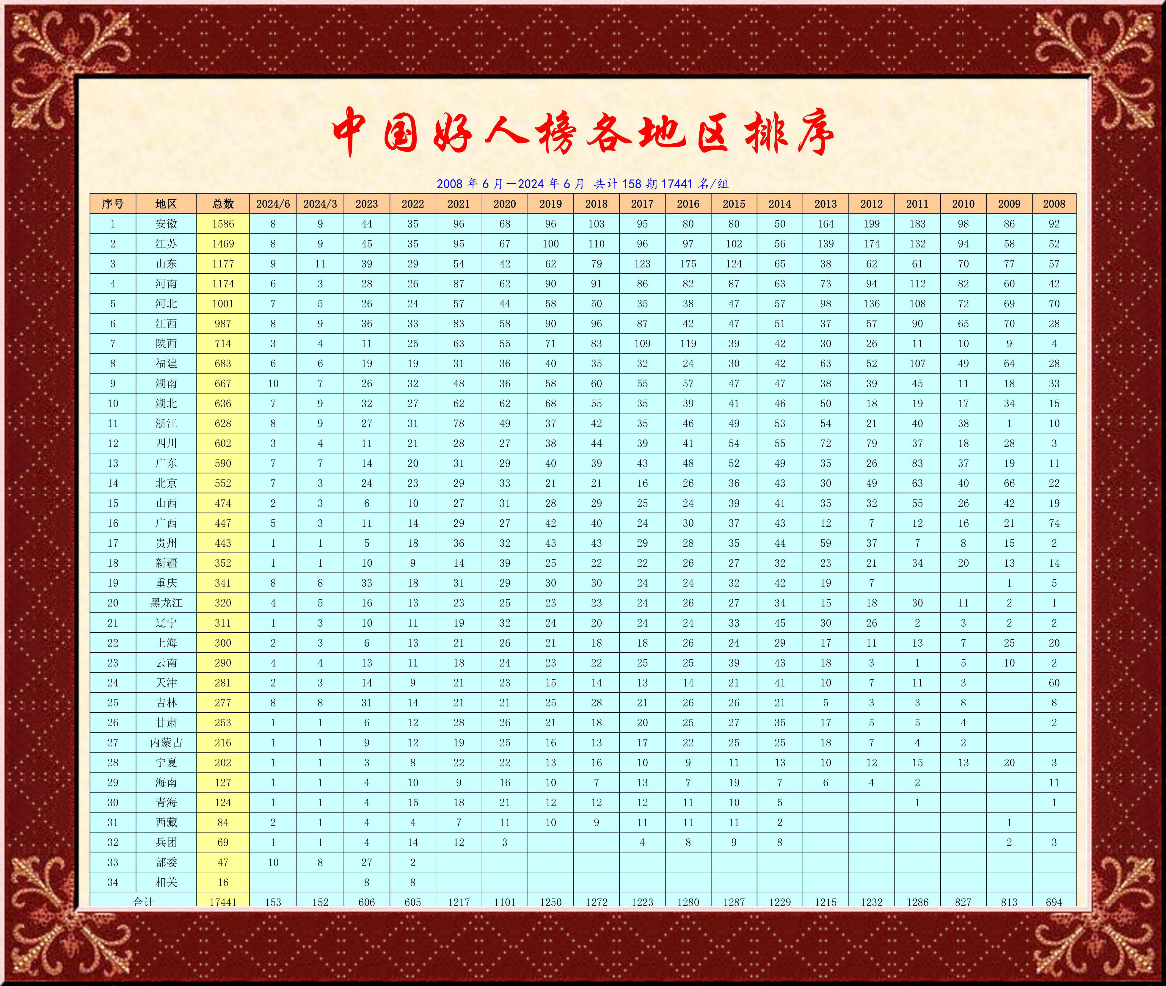 據(jù)了解,自2008年4月中央精神文明建設辦公室依托中國文明網(wǎng)組織開展“我推薦我評議‘身邊好人’”活動以來,全國共發(fā)布“中國好人”1.7萬余人(組)。本次發(fā)布活動由中央精神文明建設辦公室主辦,中國精神文明網(wǎng)、電影頻道節(jié)目中心、中共山西省委宣傳部(山西省精神文明建設辦公室)承辦,中共大同市委宣傳部(大同市精神文明建設辦公室)協(xié)辦。 (彭國強)