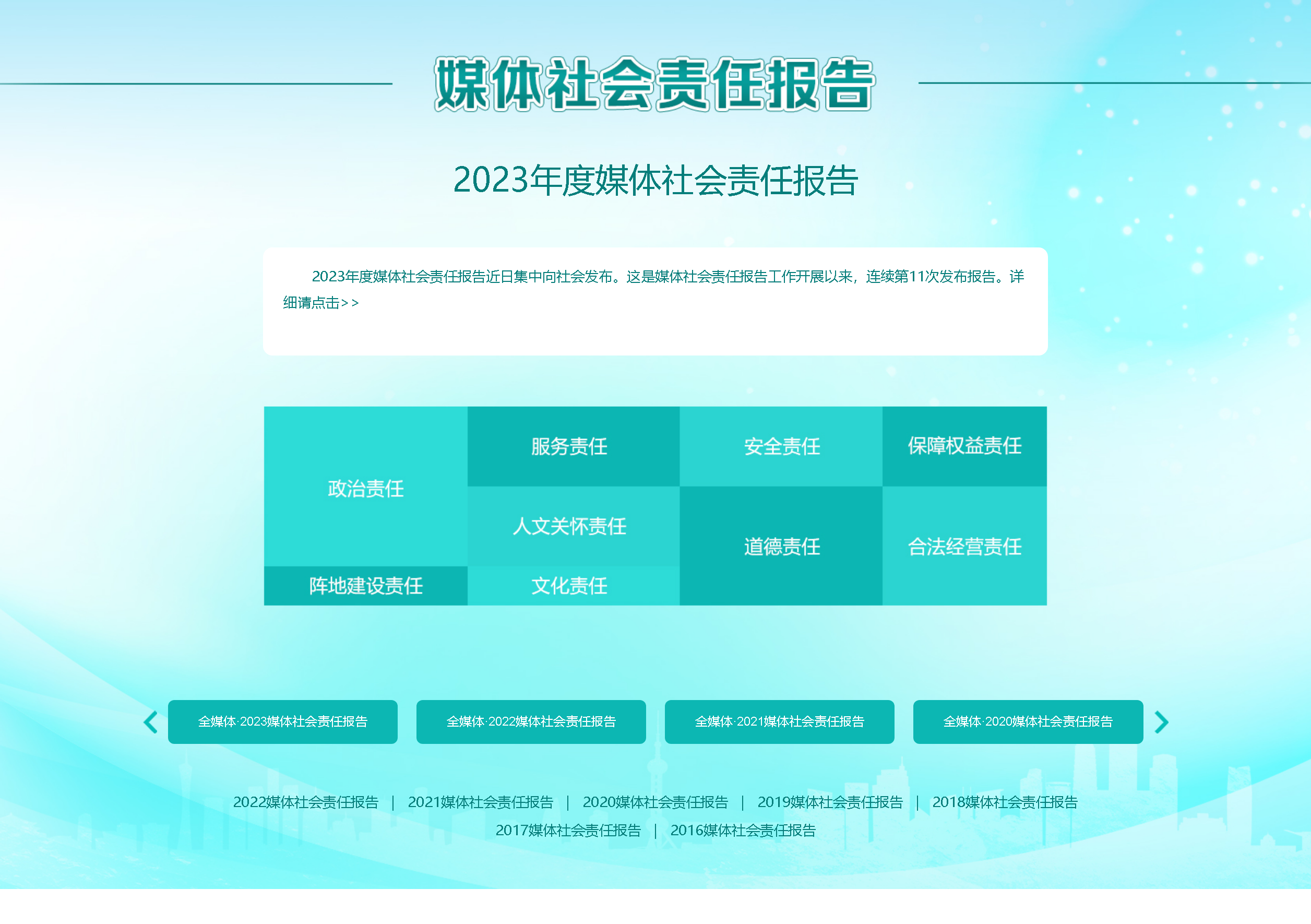 中國記協(xié)新聞道德委員會辦公室通報了2023年度媒體社會責(zé)任報告工作開展情況。根據(jù)《媒體社會責(zé)任報告制度實施辦法》,中國記協(xié)新聞道德委員會委員從政治責(zé)任、陣地建設(shè)責(zé)任、服務(wù)責(zé)任、人文關(guān)懷責(zé)任、文化責(zé)任、安全責(zé)任、道德責(zé)任、保障權(quán)益責(zé)任、合法經(jīng)營責(zé)任等9個方面開展評議、進(jìn)行打分。