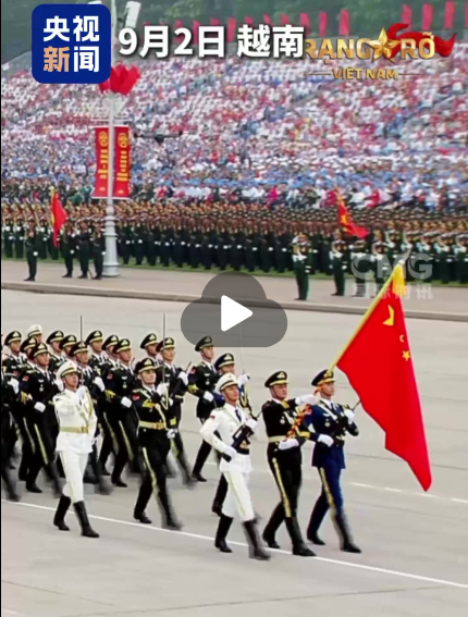 應(yīng)越南國防部邀請,中國人民解放軍儀仗司禮大隊抽組儀仗分隊,參加越南今天(9月2日)舉行的八月革命暨越南國慶80周年紀(jì)念活動。中國軍人整齊的步伐和昂揚的軍姿贏得了越南民眾的喝彩。除中國外,俄羅斯、柬埔寨、老撾、古巴和白俄羅斯等國部隊也受邀參加閱兵式。