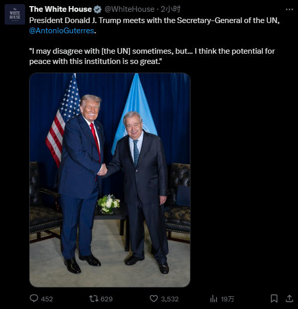 在貶低聯(lián)合國(guó)后,特朗普與古特雷斯會(huì)面 推文截圖