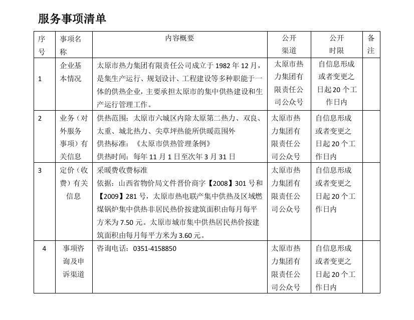 太原市熱力集團有限責任公司供熱服務范圍及服務電話