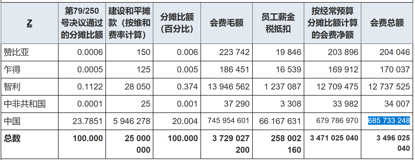 據(jù)聯(lián)合國(guó)介紹,中國(guó)是聯(lián)合國(guó)第二大會(huì)費(fèi)分?jǐn)倗?guó),所分?jǐn)偙阮~為20%,僅次于美國(guó)的22%,遠(yuǎn)高于排在第三的日本的6.93%。
