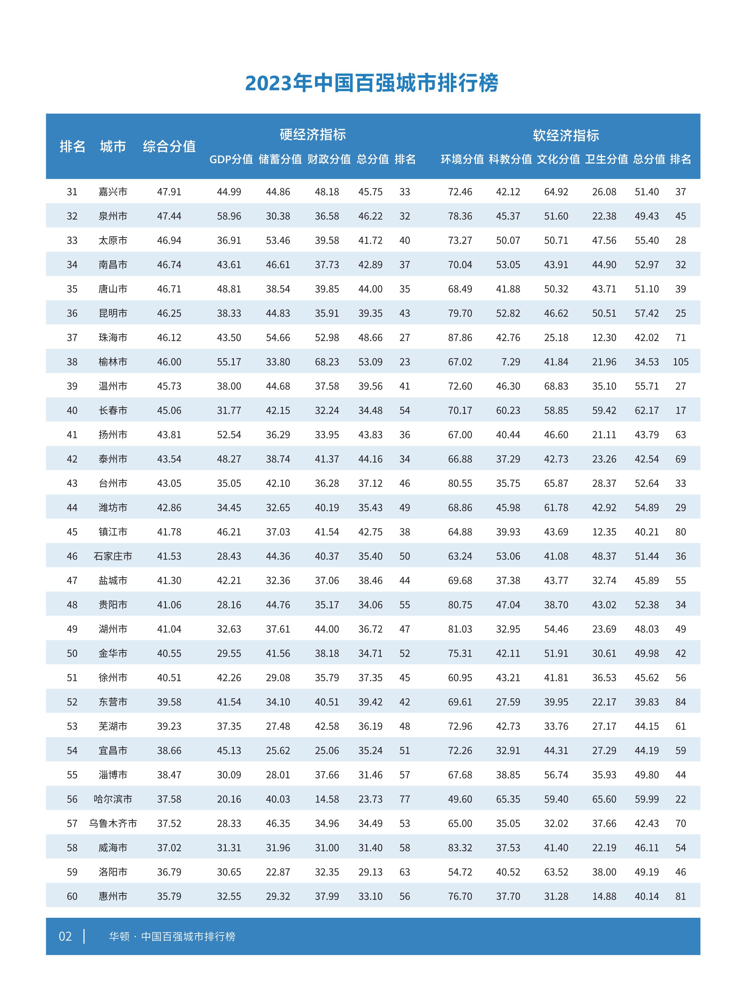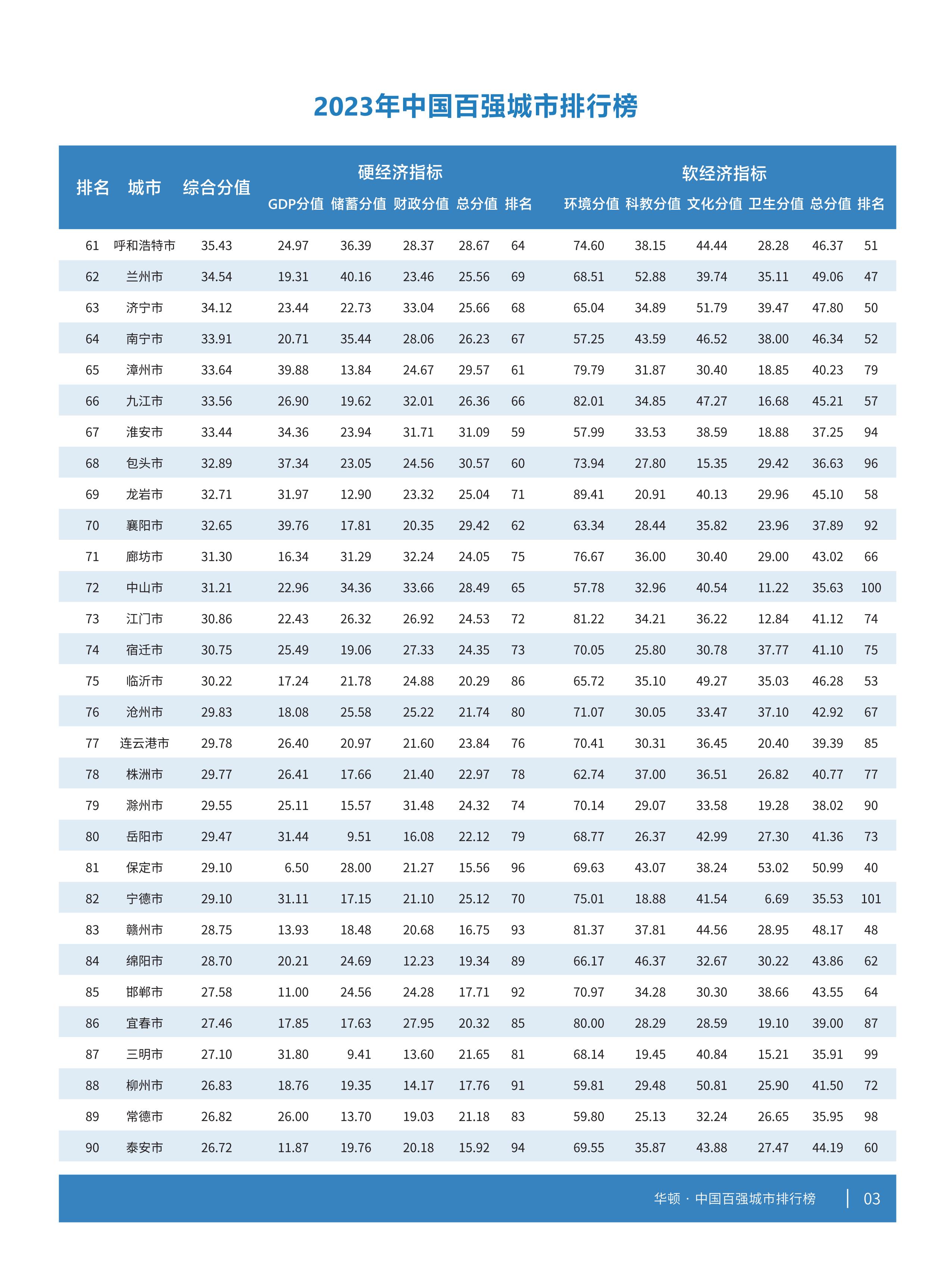 百強(qiáng)城市位次競爭依舊激烈,2023年中國百強(qiáng)城市排行榜上,有36個城市排名上升,40個城市排名下降,24個城市排名保持不變。合肥連續(xù)五年排名上升,位次由2018年的第31位連續(xù)躍升至2023年的第17位,其中科教指標(biāo)更是穩(wěn)居全國第10位。