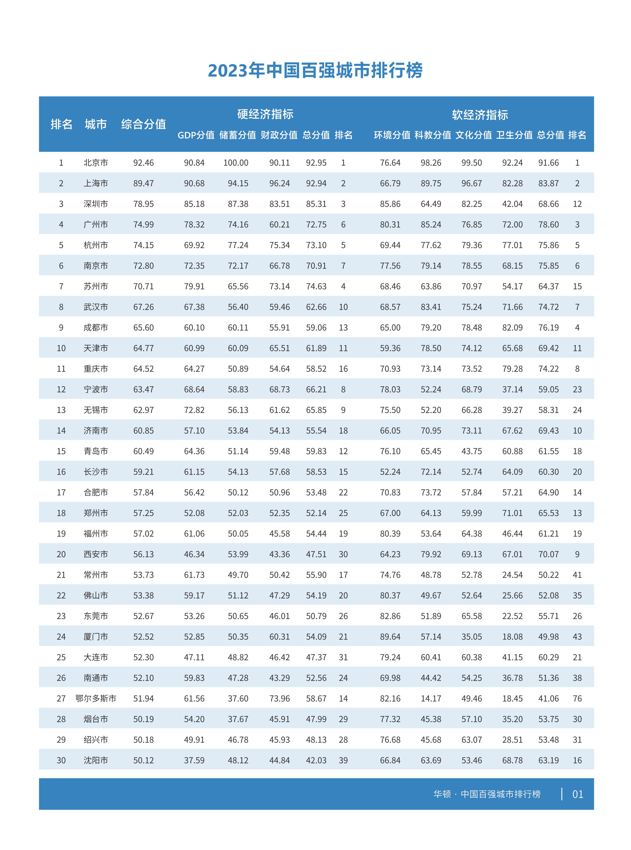 中新網(wǎng)上海7月18日電 (記者 繆璐)2023年中國百強(qiáng)城市排行榜18日在上海發(fā)布,這是華頓經(jīng)濟(jì)研究院連續(xù)第九年編制發(fā)布中國百強(qiáng)城市榜單。榜單顯示,北京、上海繼續(xù)穩(wěn)坐前兩位,大幅領(lǐng)先第三位深圳,合肥連續(xù)五年排名上升。