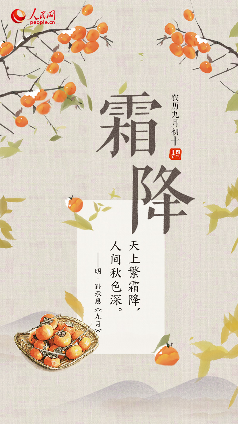 “霜降水返壑,風落木歸山?!苯袢眨覀冇瓉矶墓?jié)氣中的第十八個節(jié)氣,也是秋季的最后一個節(jié)氣——霜降。此時,天空澄明,秋景濃郁,寒意愈盛,凝露成霜,隨著落葉蕭蕭歸向山林,遼闊天地間一片清明。
