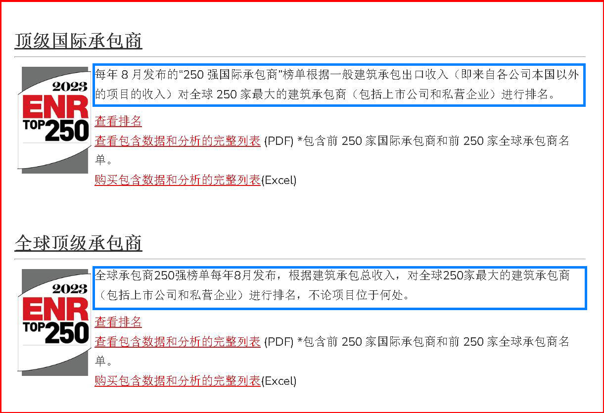 【行業(yè)資料】2023 年度 ENR 全球承包商 250 強和國際承包商250強中的中國內地企業(yè)