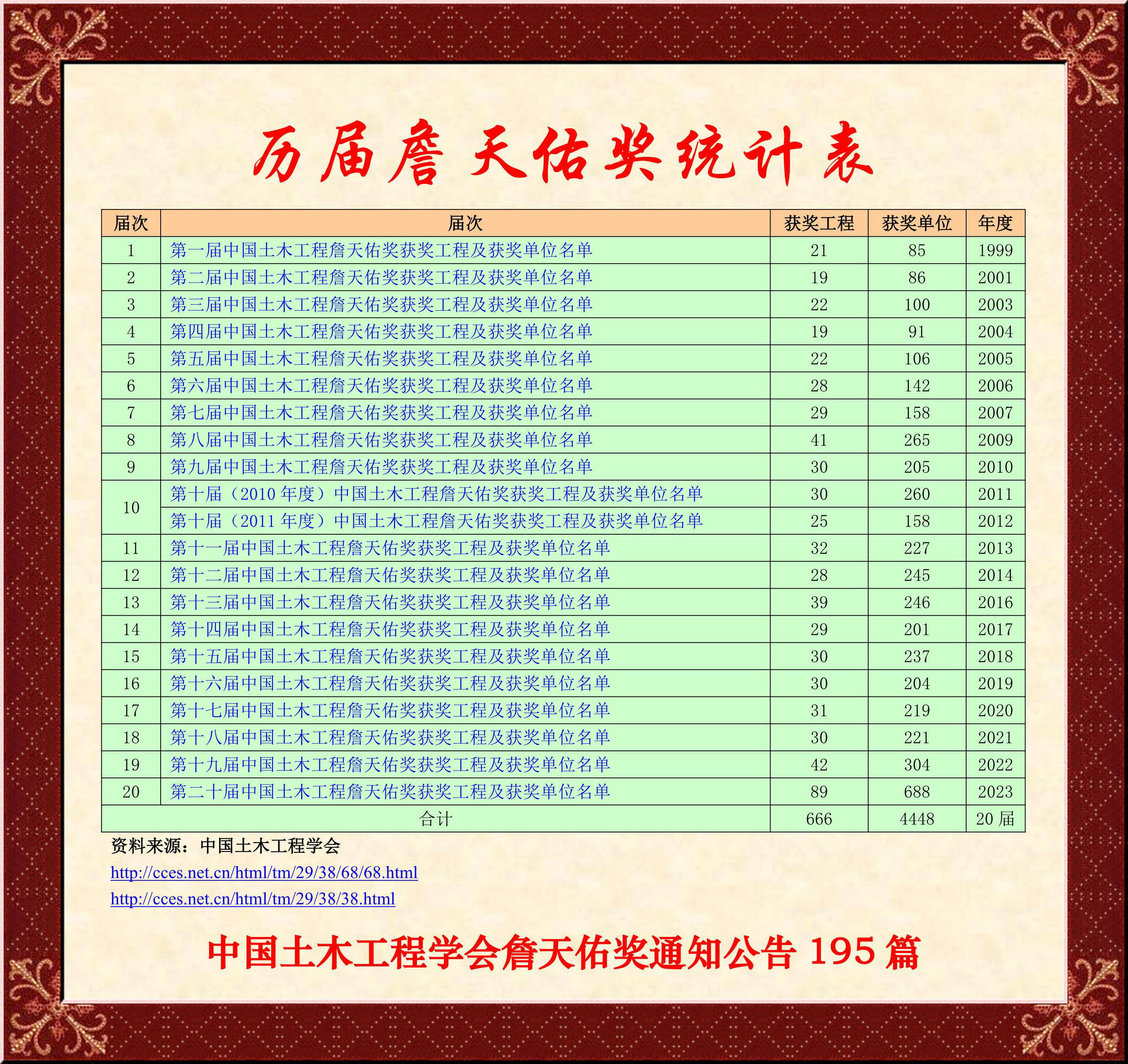 666項(xiàng)詹天佑大獎(jiǎng)工程名錄