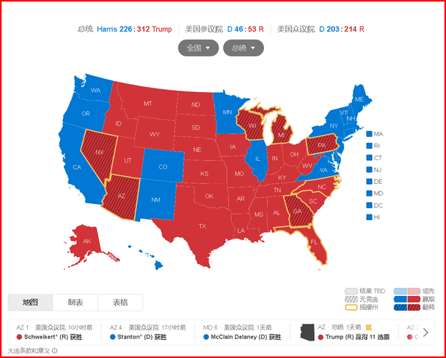 【綜合信息】美國大選實(shí)時(shí)選情:特朗普最終獲312張選舉人票