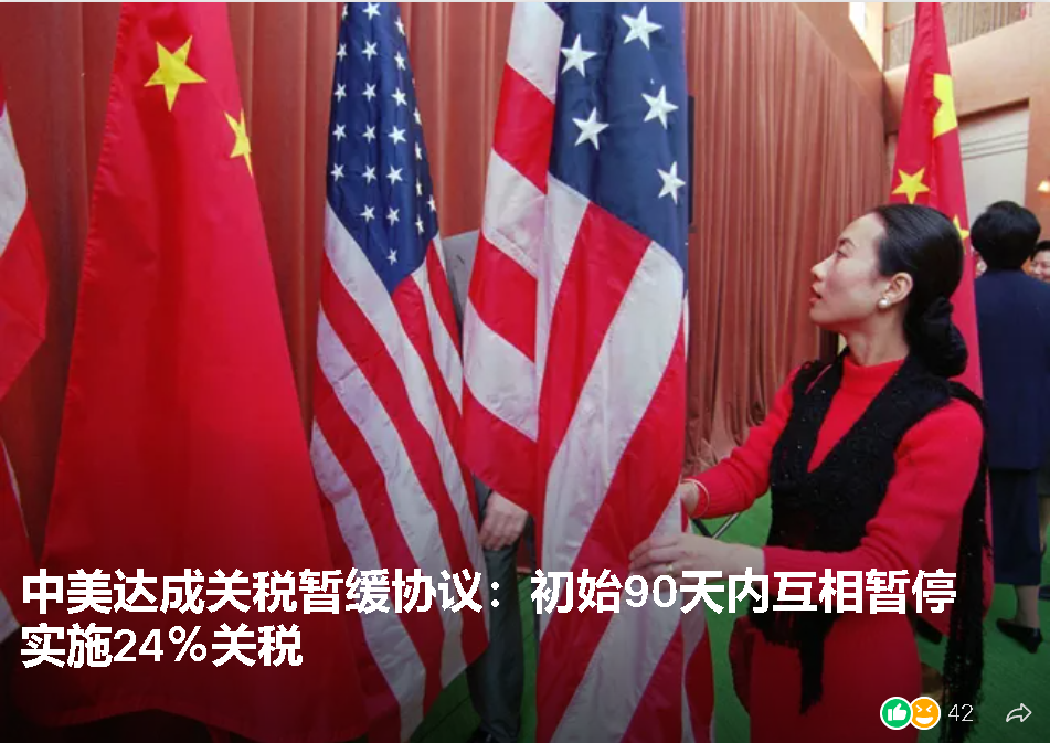 今天是特朗普二進(jìn)宮112天,發(fā)動(dòng)貿(mào)易戰(zhàn)關(guān)稅戰(zhàn)第40天,中美雙方正式發(fā)布《中美日內(nèi)瓦經(jīng)貿(mào)會(huì)談聯(lián)合聲明》,標(biāo)志著美國(guó)單方面強(qiáng)加于人的關(guān)稅政策,第一階段以失敗而告終!