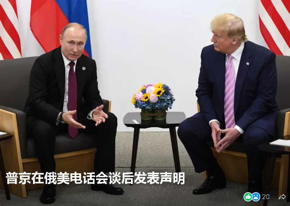 特朗普在與普京交談后表示俄羅斯和烏克蘭將立即開始?;鸷屯V箾_突的談判;