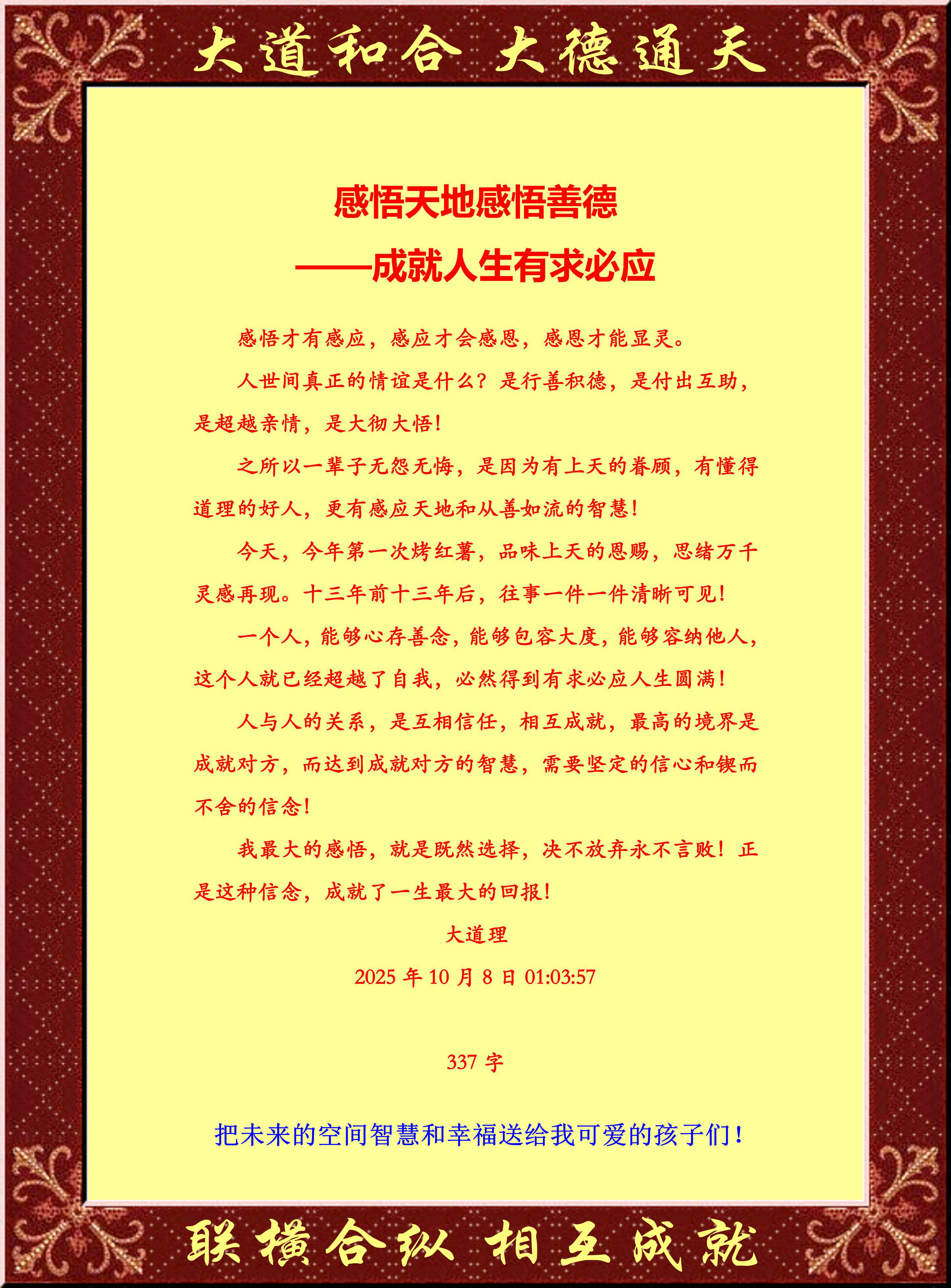 感悟才有感應(yīng),感應(yīng)才會(huì)感恩,感恩才能顯靈。