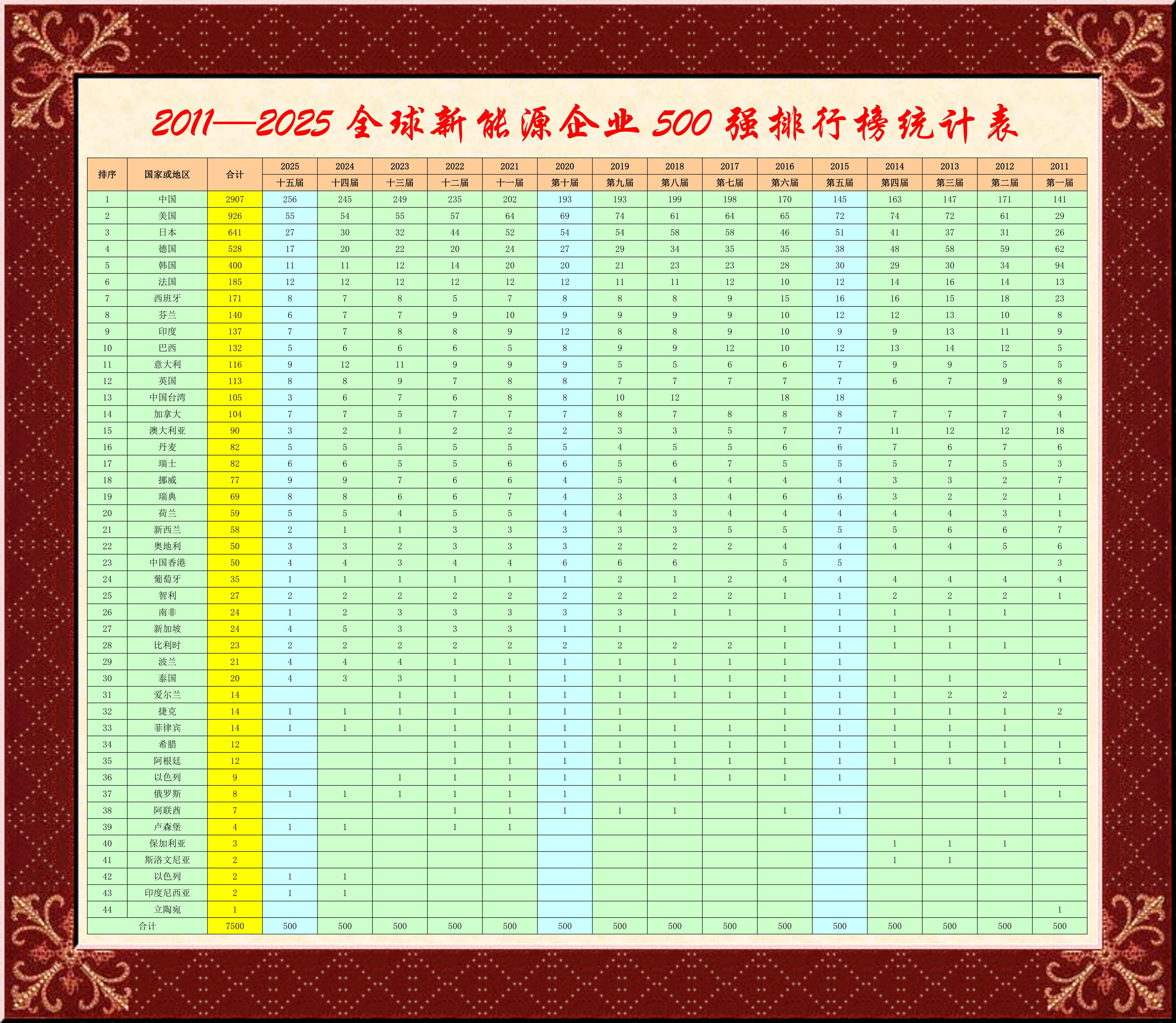 2025年全球新能源企業(yè)500強(qiáng)排行榜