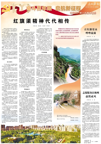 紅旗渠的修建離不開黨的領(lǐng)導(dǎo)和人民群眾的艱苦奮斗。時(shí)任河南林縣(今林州市)縣委第一書記的楊貴作為紅旗渠總設(shè)計(jì)師,勇于擔(dān)當(dāng),克服重重阻力,歷時(shí)10年,終于建成被譽(yù)為“人工天河”的紅旗渠水利工程。
