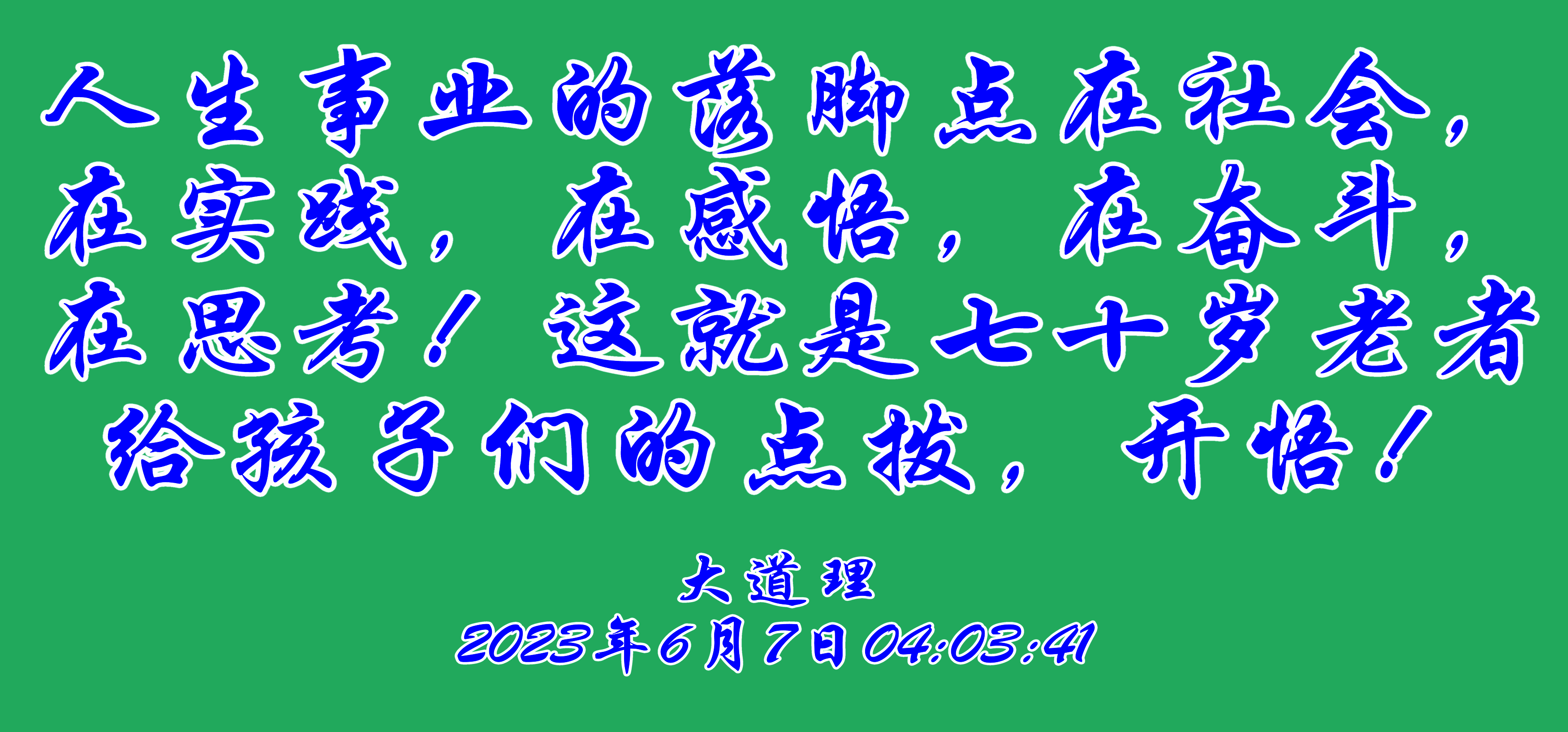 人生事業(yè)的落腳點在社會,在實踐,在感悟,在奮斗,在思考!這就是七十歲老者給孩子們的點撥,開悟!
