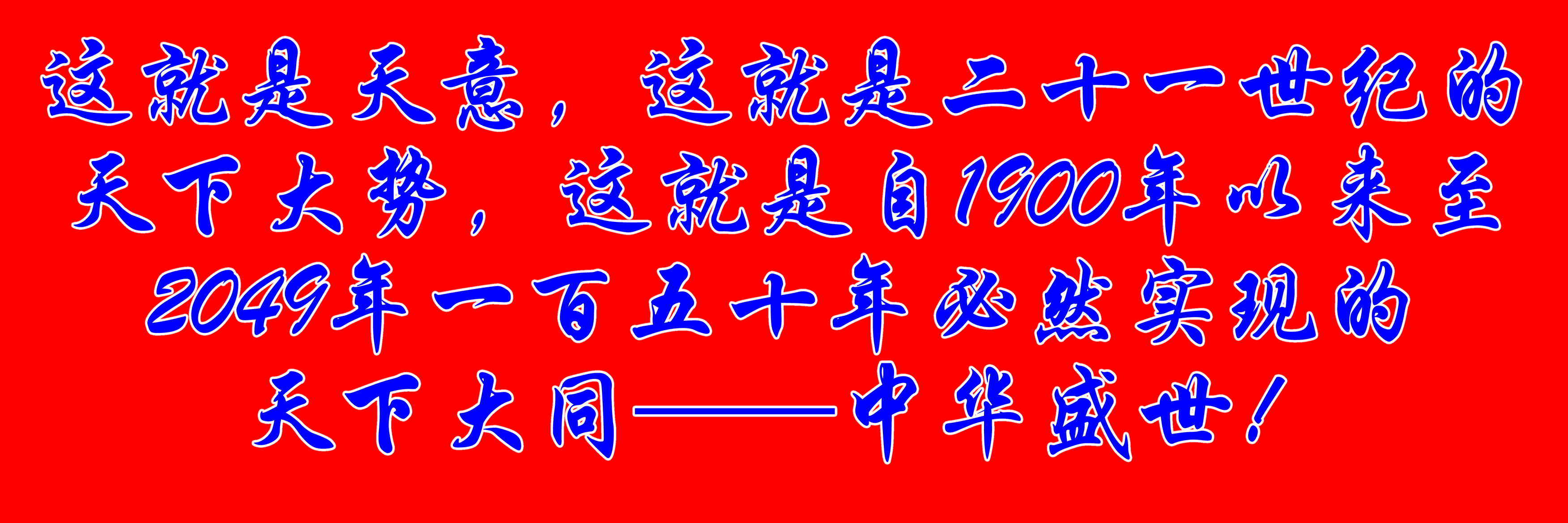 這就是天意,這就是二十一世紀的天下大勢,這就是自1900年以來至2049年一百五十年必然實現(xiàn)的天下大同 ——中華盛世!