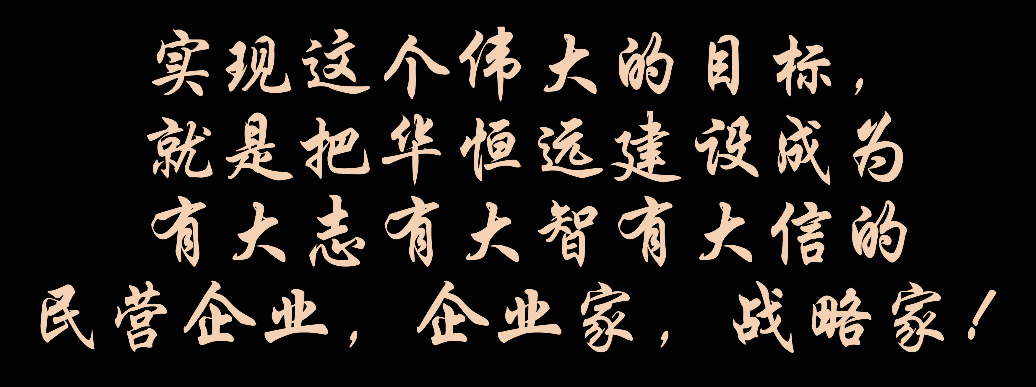 實(shí)現(xiàn)這個(gè)偉大的目標(biāo),就是把華恒遠(yuǎn)建設(shè)成為有大志有大智有大信的民營(yíng)企業(yè),企業(yè)家,戰(zhàn)略家!