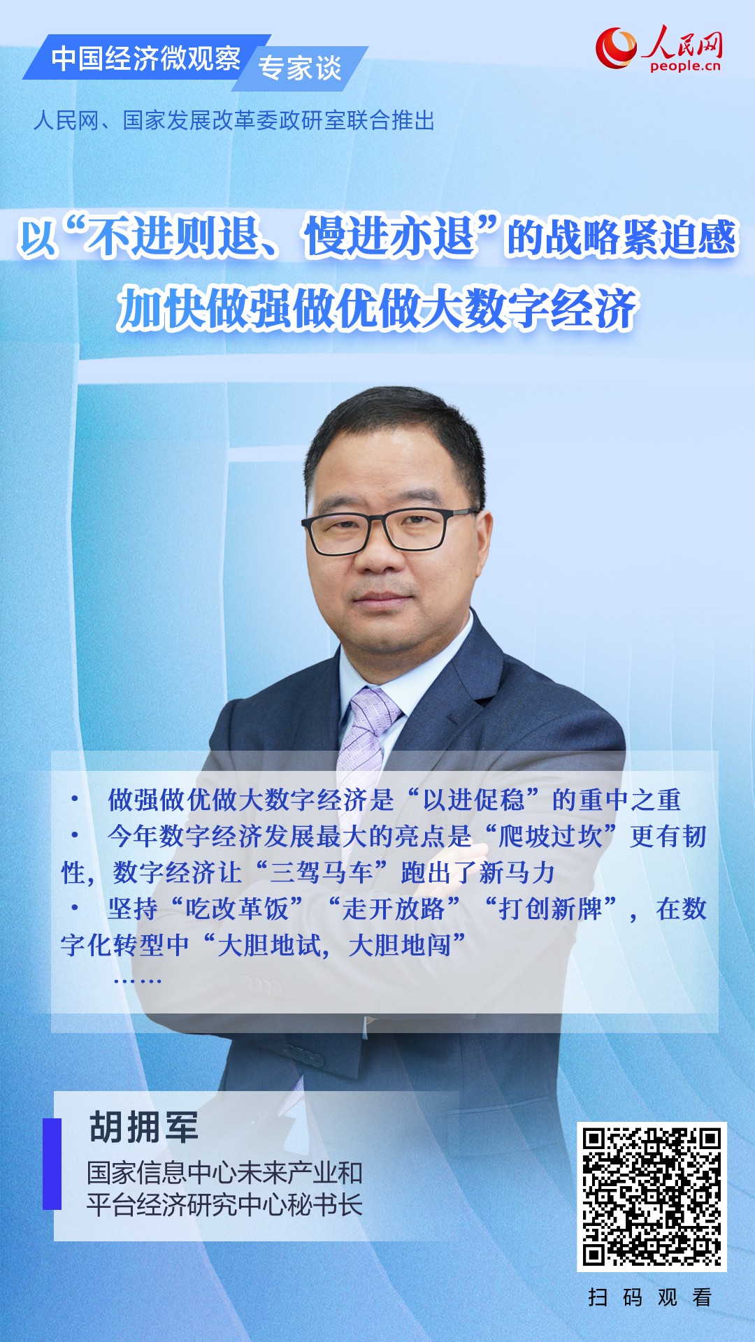 近日,國家信息中心未來產業(yè)和平臺經濟研究中心秘書長胡擁軍做客《中國經濟微觀察·專家談》欄目時表示,“以進促穩(wěn)”是中央經濟工作會議釋放的最鮮明的積極信號之一,從經濟回升向好的趨勢、潛力、基礎來看,做強做優(yōu)做大數字經濟是“以進促穩(wěn)”的重中之重。