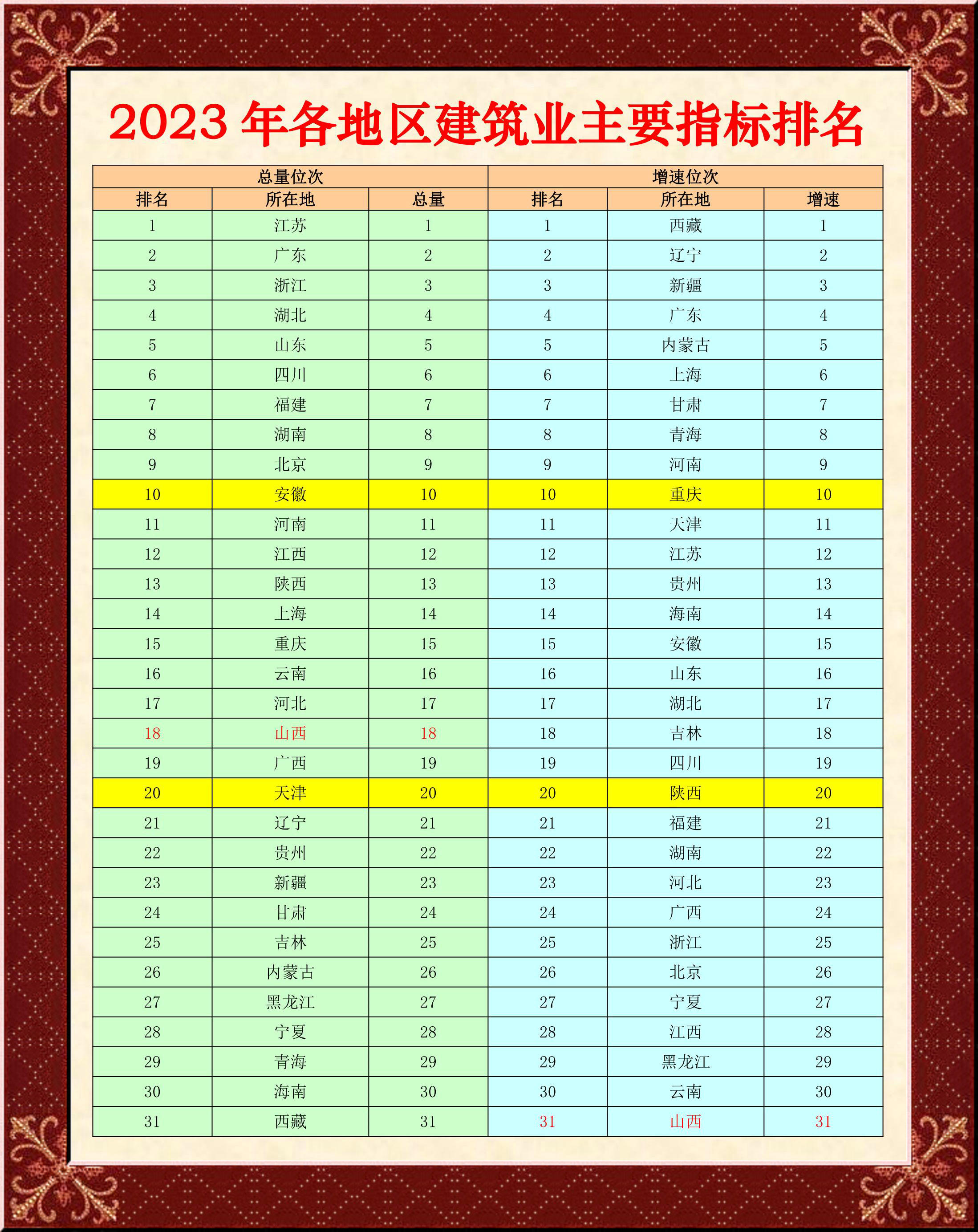 昨天,中國(guó)建筑業(yè)協(xié)會(huì)發(fā)布《2023年建筑業(yè)發(fā)展統(tǒng)計(jì)分析》,山西省建筑業(yè)主要指標(biāo)增速全國(guó)墊底,總量排全國(guó)第18位,居全國(guó)中下水平。這個(gè)結(jié)果是意料之中的結(jié)果,更深層次又反映出什么問(wèn)題呢?三個(gè)字:不重視!