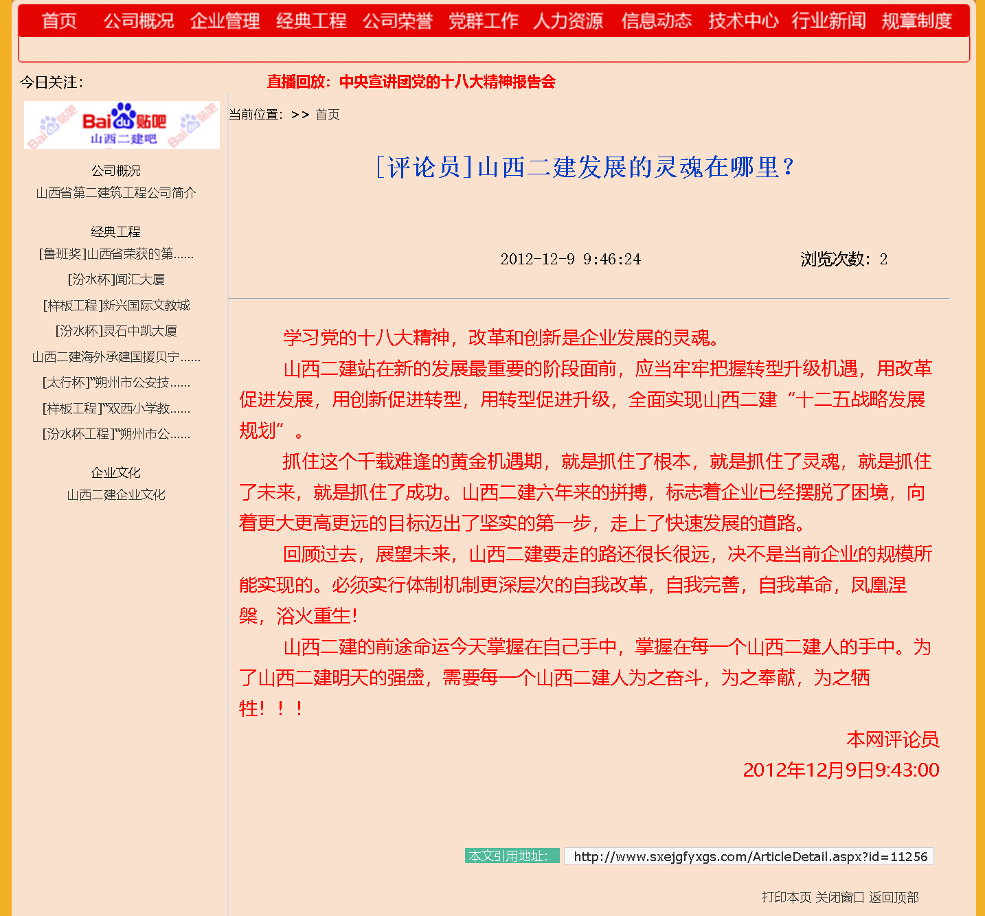 [評(píng)論員]山西二建發(fā)展的靈魂在哪里?