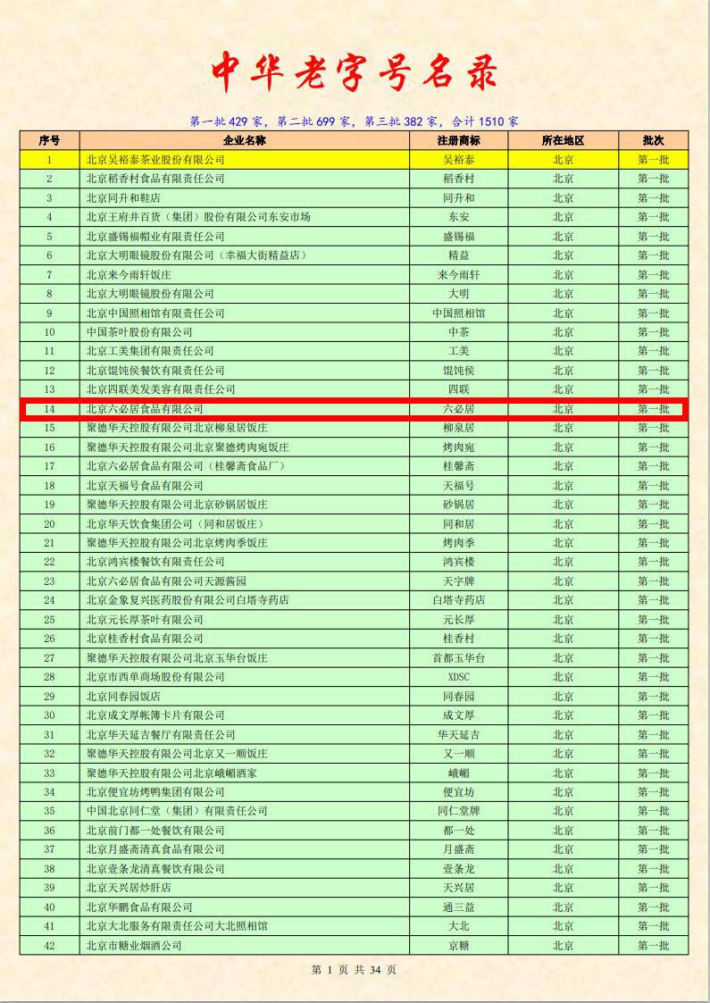 前門外有一條胡同叫糧食店街,臨街有一家店鋪,歷史悠久,聞名遐邇,這就是已有四百十多年歷史的六必居醬園。據(jù)史料記載,六必居始建于明朝嘉靖九年(公元1530年),由山西臨汾人趙氏三兄弟創(chuàng)辦。由于趙氏兄弟善于經(jīng)營(yíng),加之六必居開業(yè)時(shí)所選擇的地理位置好,所以買賣一直很興隆。后來(lái)又?jǐn)U充了門面,由開始時(shí)的兩間小店堂,擴(kuò)充為四間門面,且后邊還增設(shè)了加工的作坊,使之生意越做越大。最初,這里是一家酒店,為保證酒味醇香甘美,這家作坊曾制訂了六條操作規(guī)則:黍稻必齊,湛之必潔、陶瓷必良、火候必得、水泉必香?!傲鼐印庇纱说妹?。