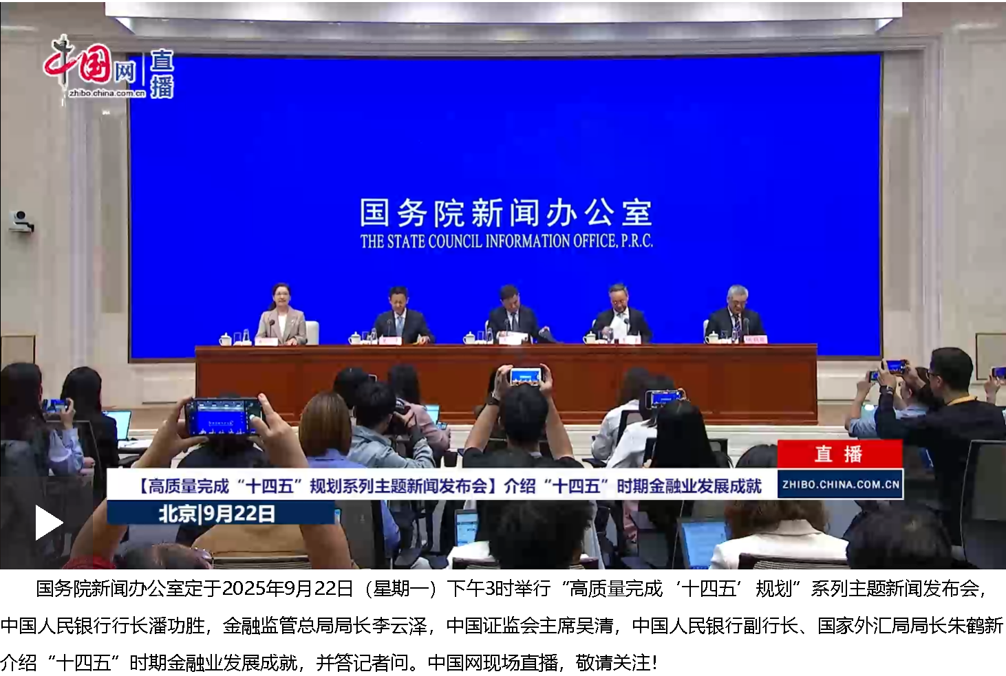 9月22日,國務(wù)院新聞辦公室在北京舉行“高質(zhì)量完成‘十四五’規(guī)劃”系列主題新聞發(fā)布會(huì),中國人民銀行行長潘功勝,金融監(jiān)管總局局長李云澤,中國證監(jiān)會(huì)主席吳清,中國人民銀行副行長、國家外匯局局長朱鶴新介紹“十四五”時(shí)期金融業(yè)發(fā)展情況,并答記者問。新華社記者 李鑫 攝